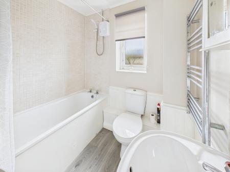 - MODERN FITTED BATHROOM WITH WHITE SUITE AND SHOWER UNIT