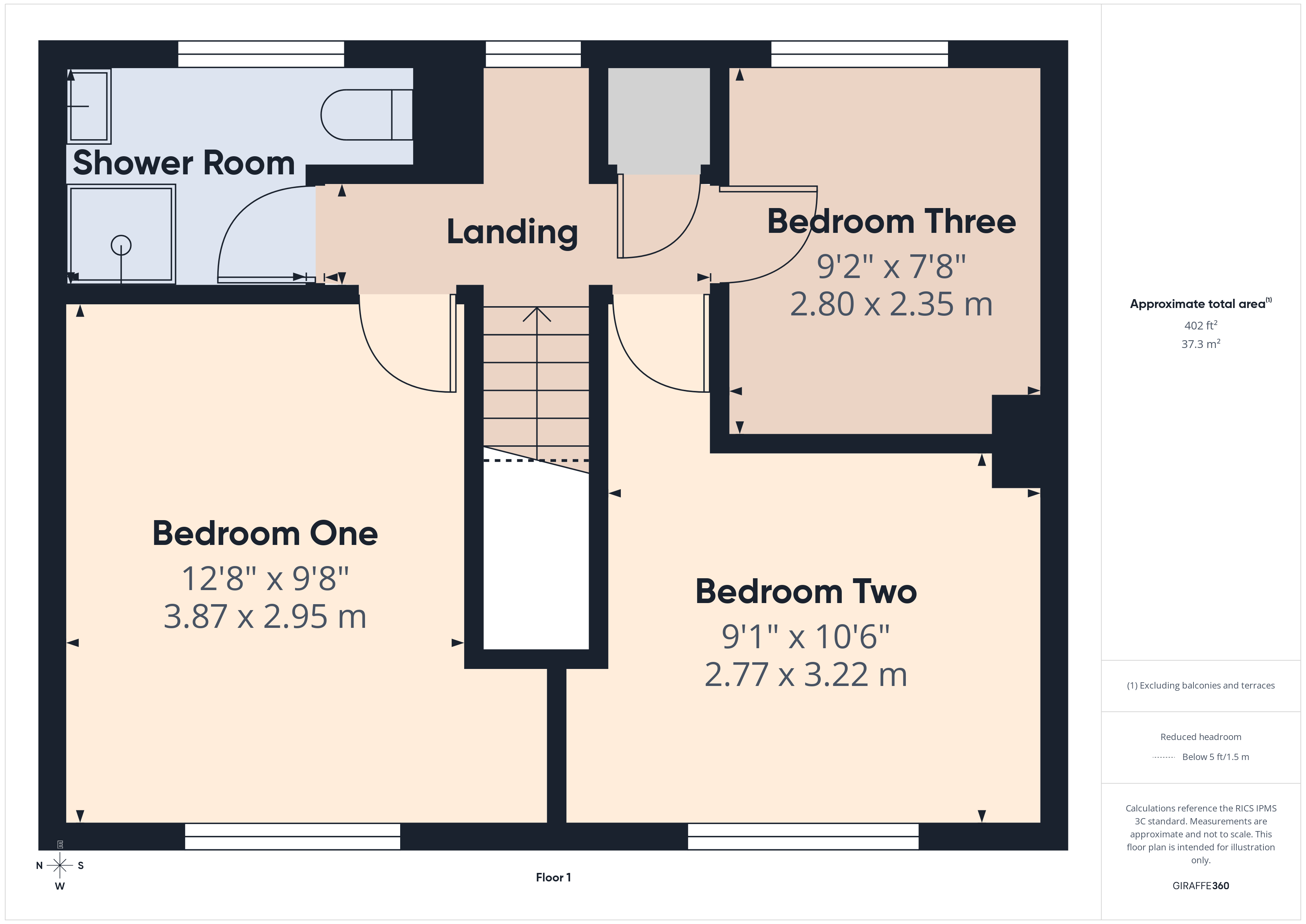 BEDROOM 1 12’8” x 9’9” (3.86m x 2.98m) Built in wardrobe. Radiator. Double glazed window.