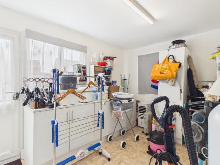 UTILITY Pcvu clad contruction and flat roof.Upvc double glazed windows and door to garden. Worktop and cupboards under. Plumbing for washing machine.