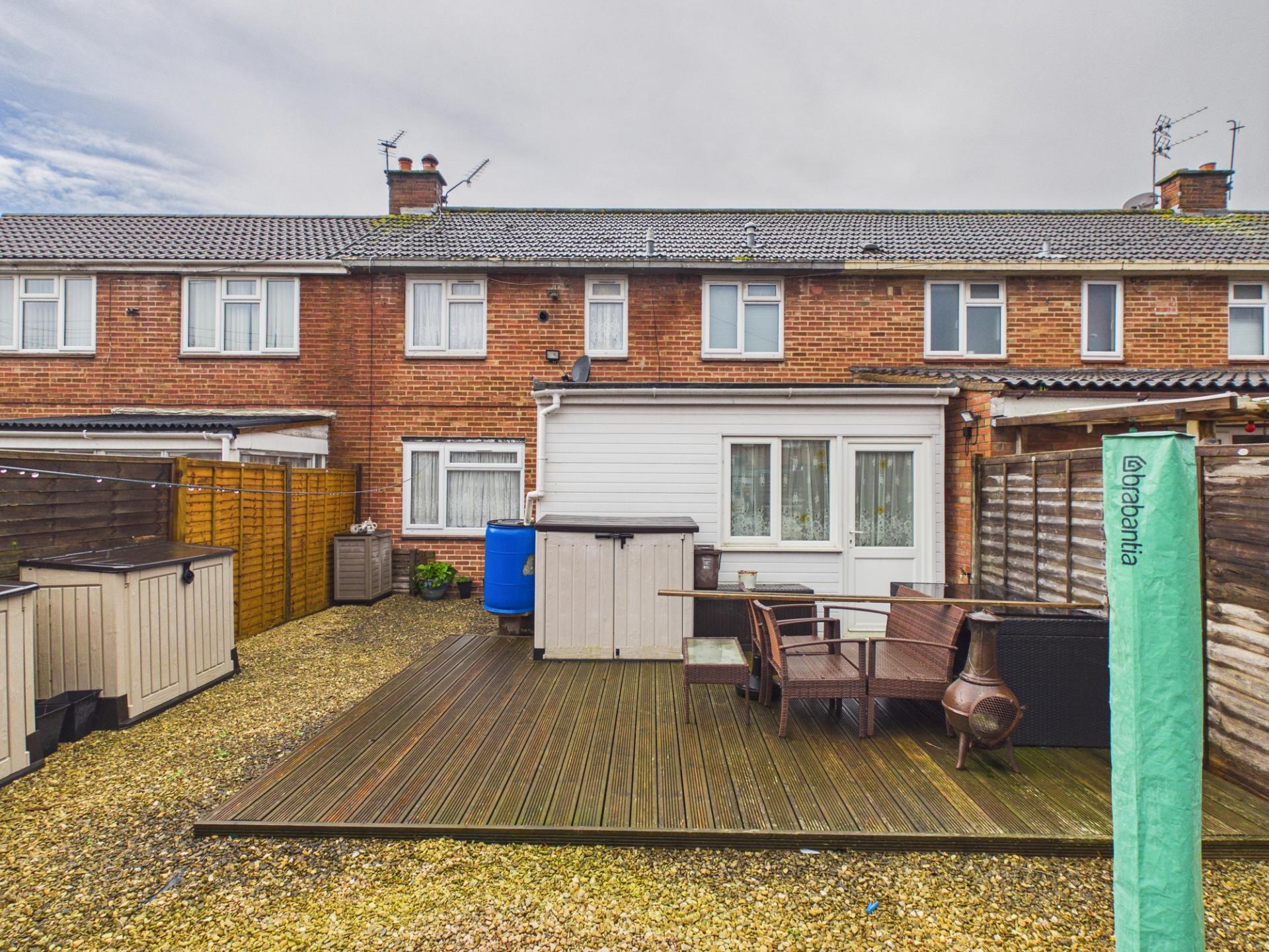 OUTSIDE The property offers off streetPARKING to the front with ample space to allow for 2 cars. Enclosed rear garden, with timber decking and gravelled areas. Timber GARDEN SHED.