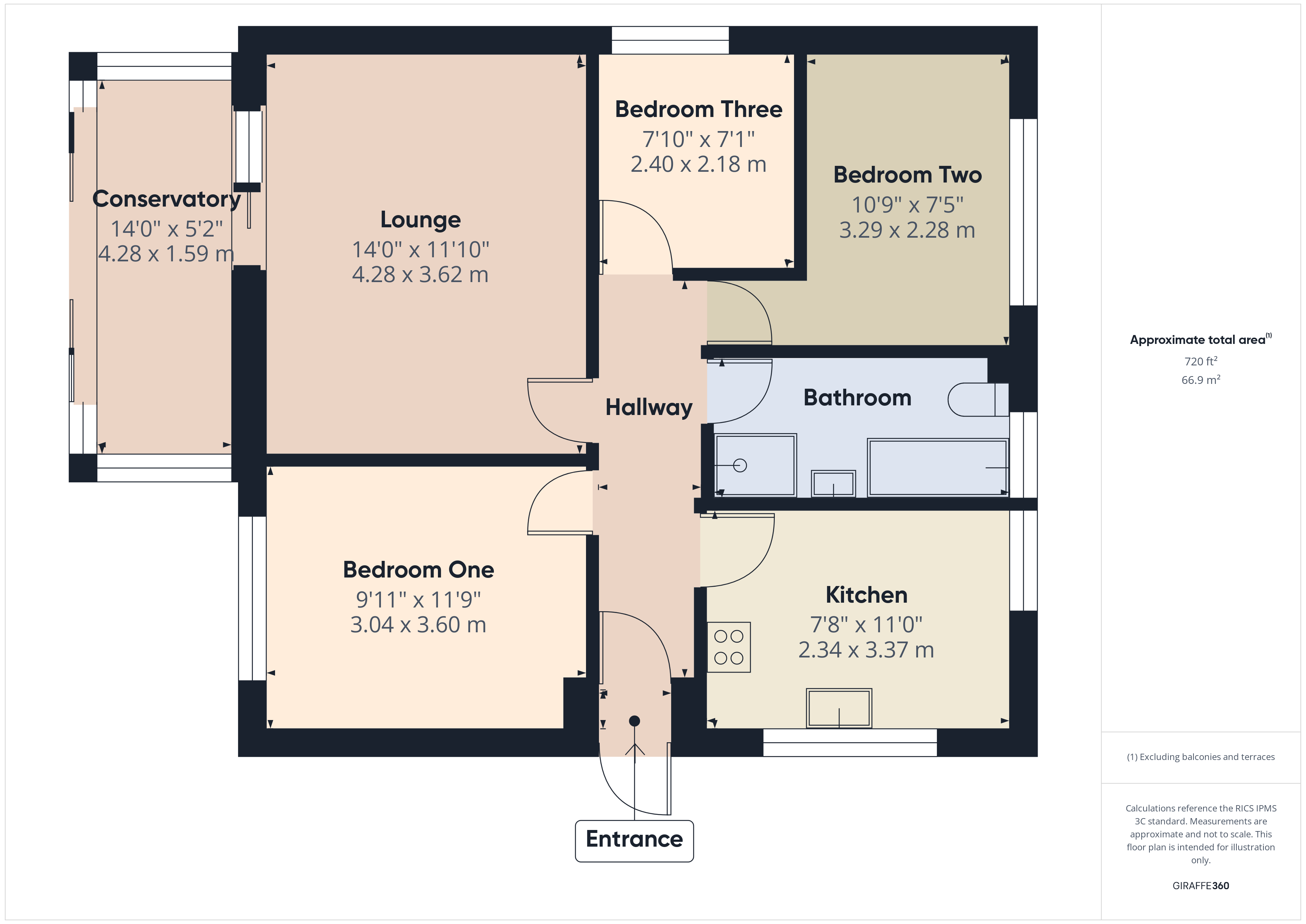 LOUNGE 14’0” x 11’10” (4.28m x 3.62m) Sliding door to the Conservatory and radiator. Decorated to neutral colours, plus fitted carpet.