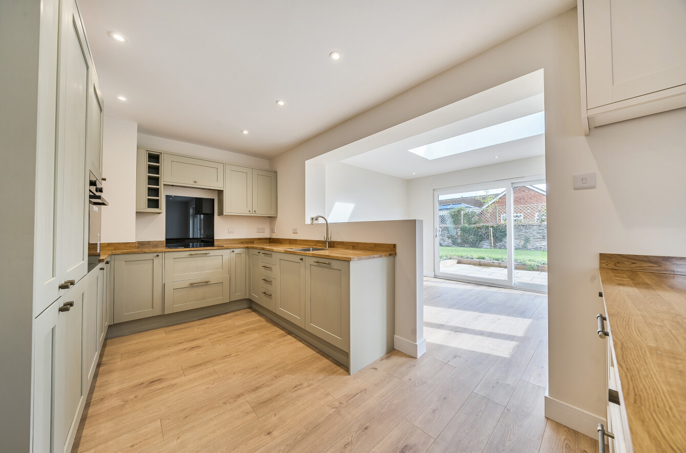 Offering the best of both worlds, this detached bungalow combines mature design and generous proportions with a complete transformation into a stylish modern home. The contemporary open-plan kitchen/dining/sitting room is the heart of the property, flooded with light from large windows and doors that open onto both the front and rear gardens. The newly fitted kitchen is well equipped with a range of integrated appliances, making it perfect for family life and entertaining.