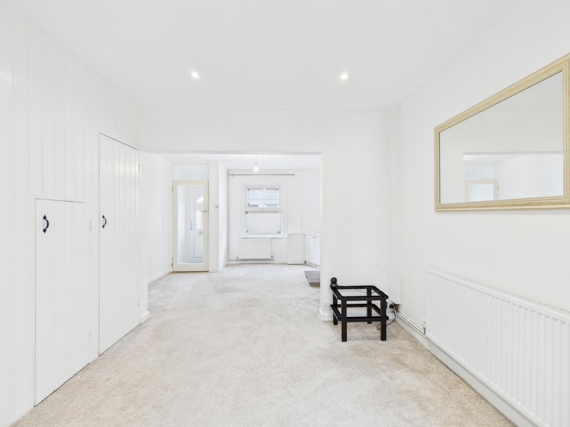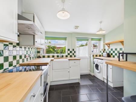 KITCHEN 15'8" x 10'7" (4.78m x 3.24m). Window to the rear aspect and door to the garden. A range of wall an base units are present with ‘Belfast’ sink, space for cooker, having extractor hood over and space for fridge/freezer. Space and plumbing for a washing machine. Radiator.