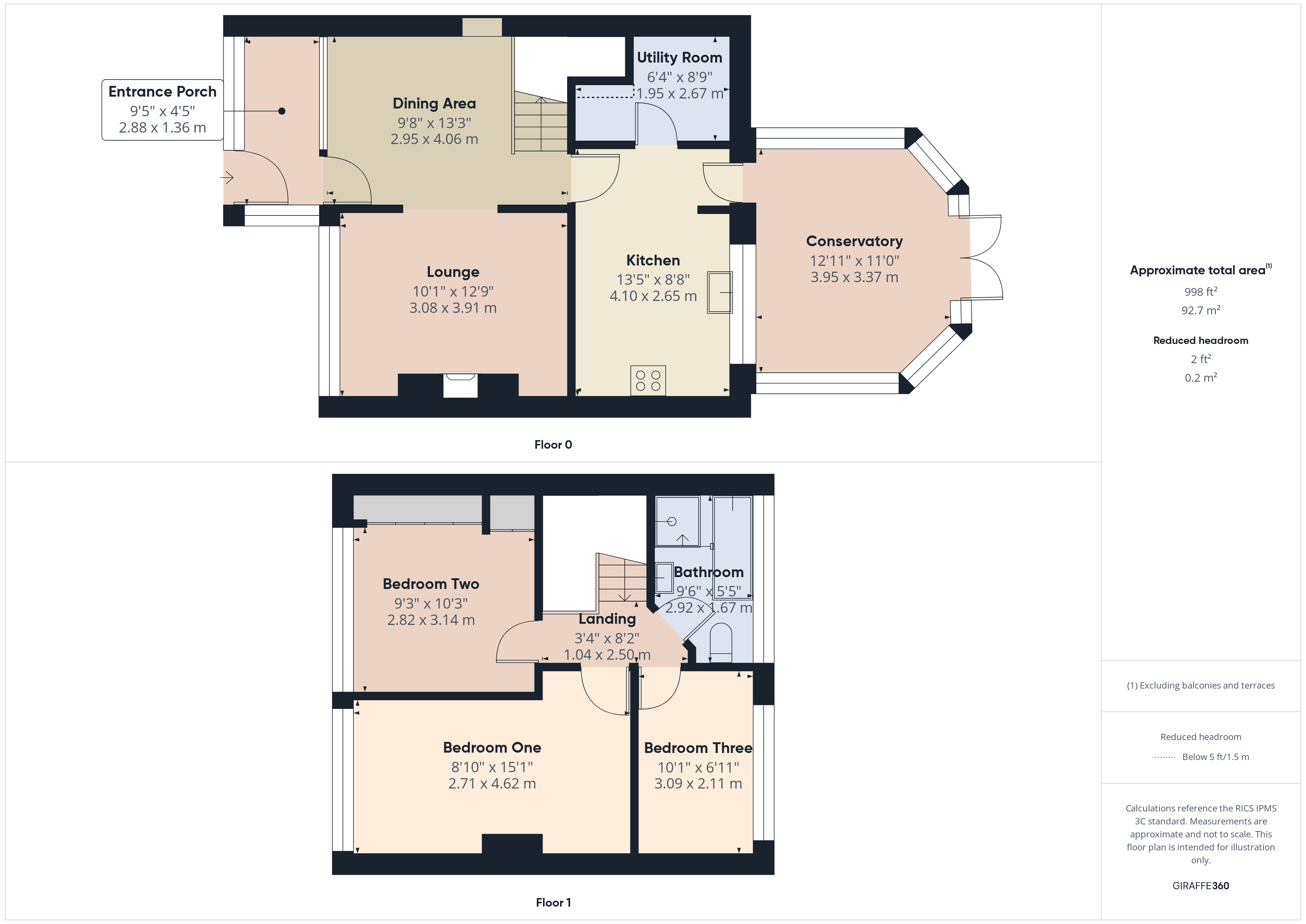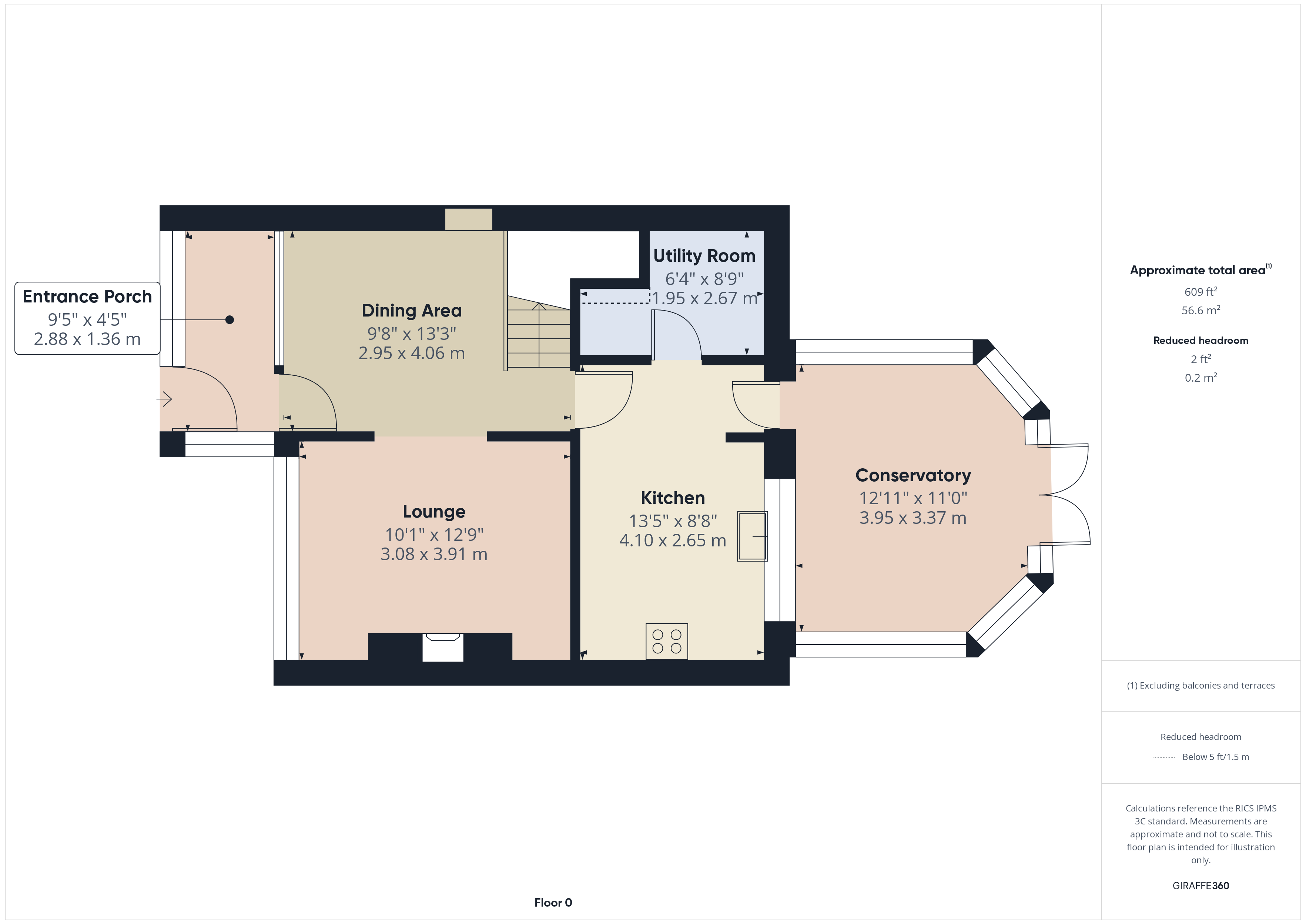 CONSERVATORY 12’10” x 10’10” With UPVC double glazed French doors to Garden radiator, Vinolay floor covering. Stairs to