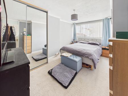 BEDROOM 1 15’1” x 8’9” With built in double doored Wardrobes with mirrored sliding doors, Radiator, Carpet, Power points