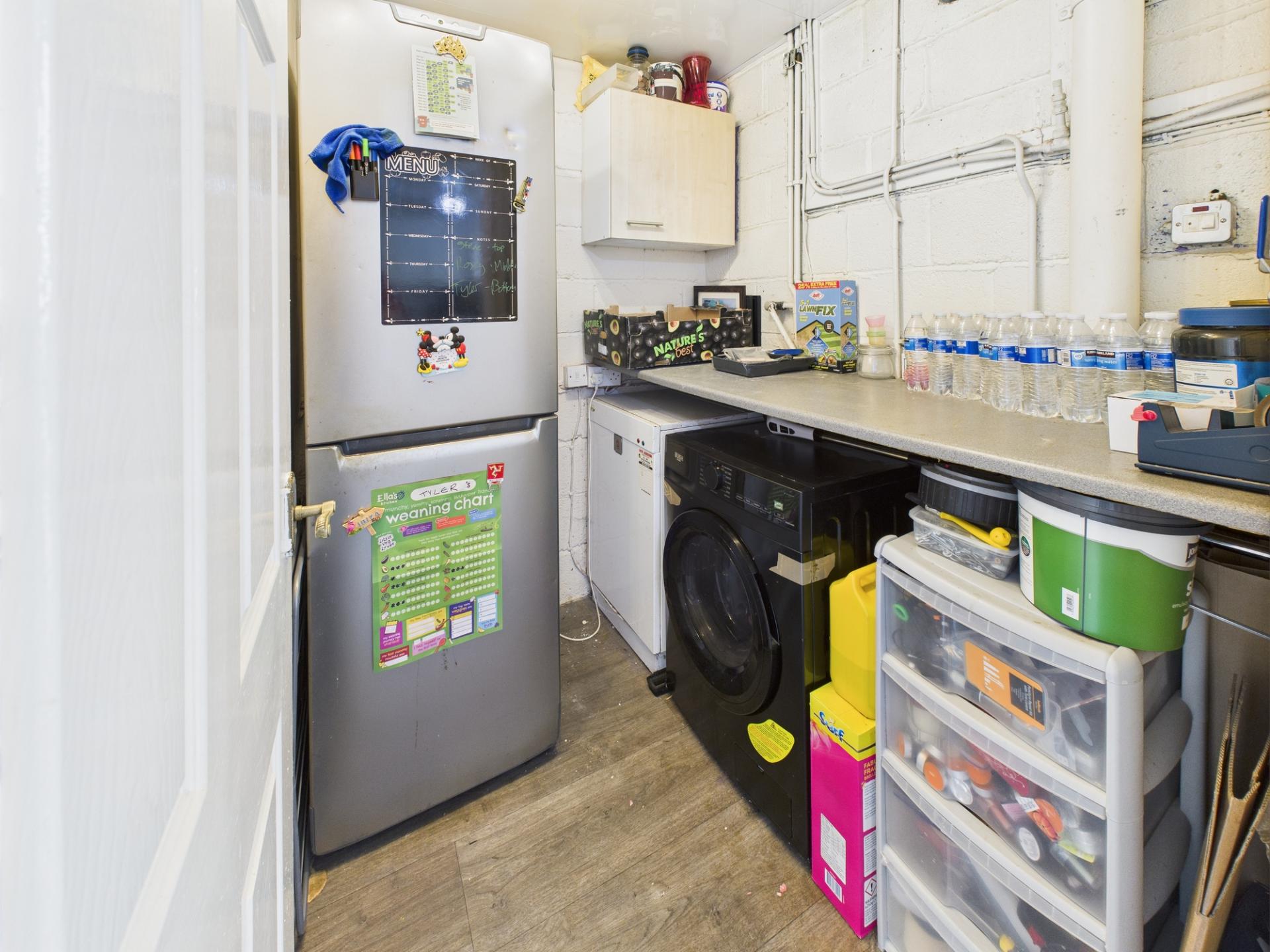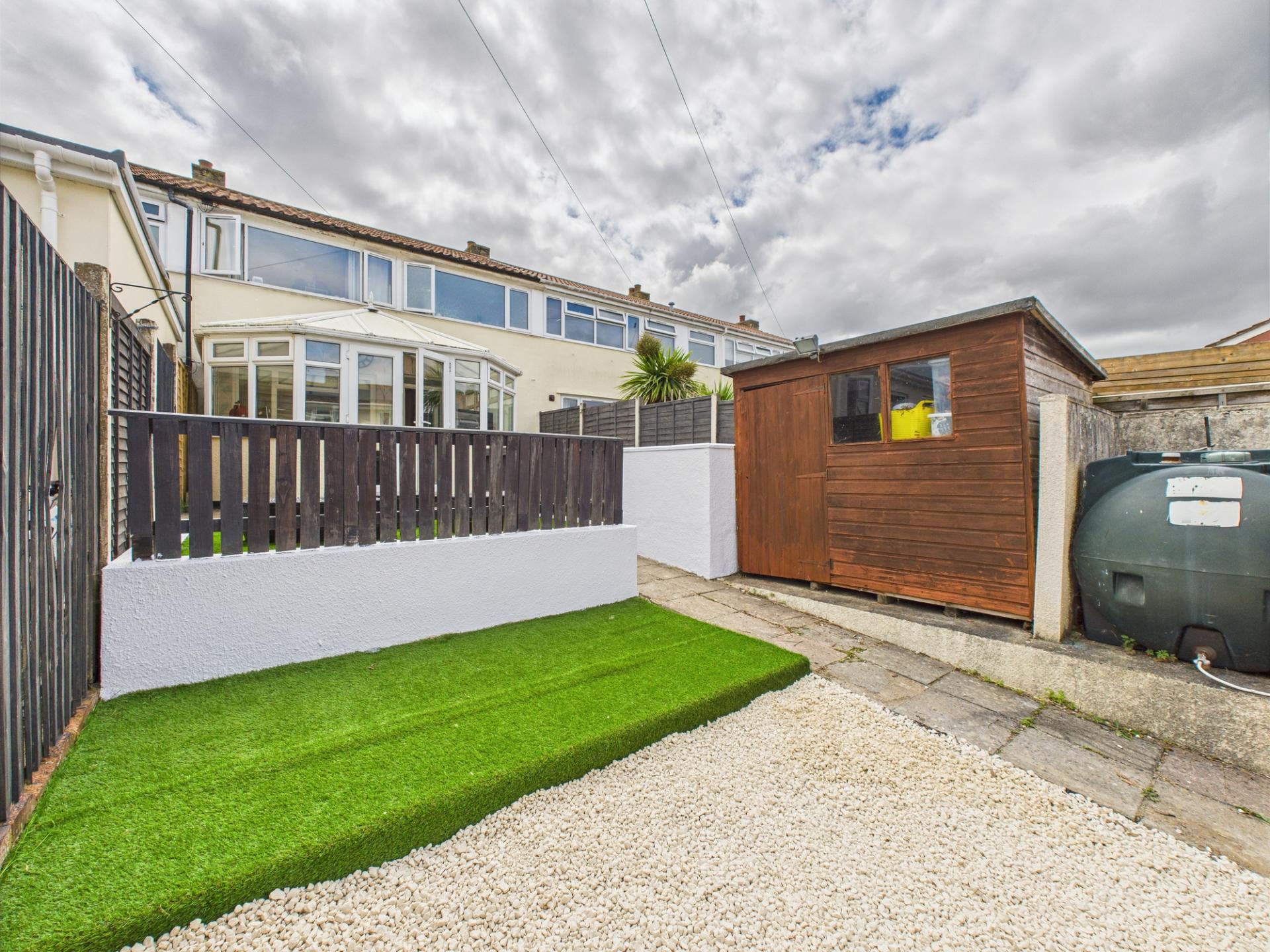OUTSIDE To the front of the property the Garden is enclosed by picket fencing, small area of lawn, stone chippings. To the rear of the property good size Garden comprising paved patio area and path, artificial lawn enclosed by picket fencing, steps down to stone chipping area, Garden Shed, Oil tank, rear pedestrien gate.
