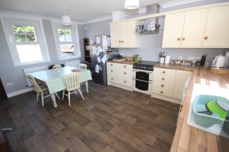 KITCHEN/DINER 16’4” x 14’92. Single drainer astralite sink unit inset into worksurface with 2 floor units and plumbing for washing machine under. Adjoining work tops with unit, 3 drawer unit and large pan drawer units below. Cooker space with extractor canopy over Dual aspect UPVC double glazed windows affording superb southerly views. Stairs to first floor with understair cupboard. Worcester oil fired boiler providing central heating and hot water. Stable door to outside.