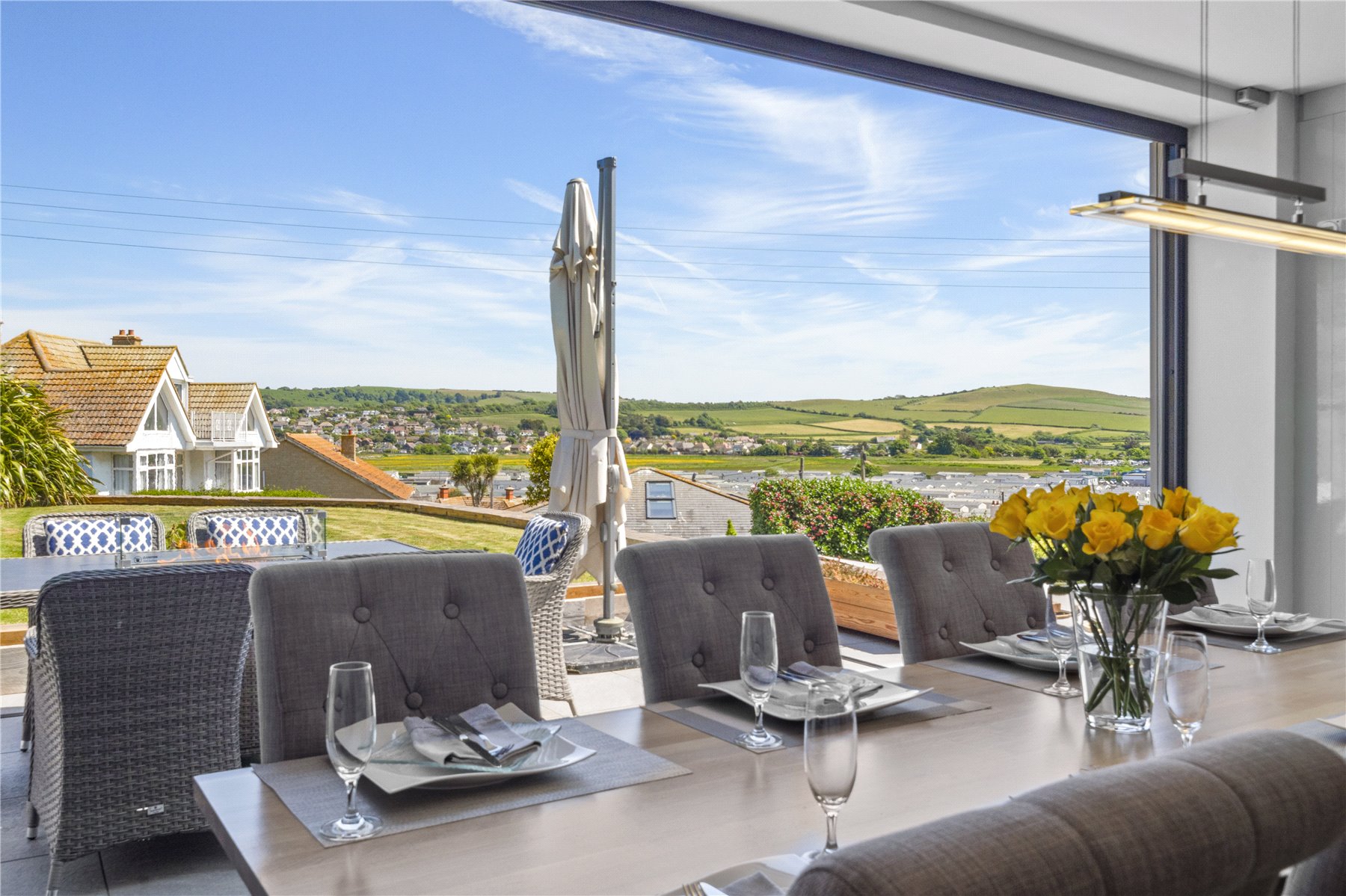 Tucked away on a no-through road, Stonehaven is a truly exceptional family home that effortlessly combines luxury, comfort, practicality and superb eco credentials. Occupying a substantial plot, this impressive coastal residence boasts some of the most breathtaking sea views imaginable, stretching across West Bay towards the iconic Isle of Portland. With panoramic countryside views over the River Brit and rolling hills towards Bridport this home provides a stunning natural backdrop that changes with the seasons.
