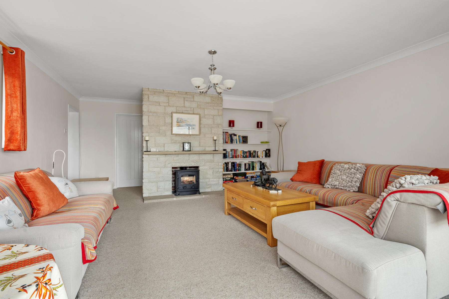 A sheltered ENTRANCE PORCH, filled with natural light from dual-aspect windows, provides a gentle introduction to the home. From here, the central HALLWAY connects the accommodation with ease, offering two useful storage cupboards, an airing cupboard and loft access.