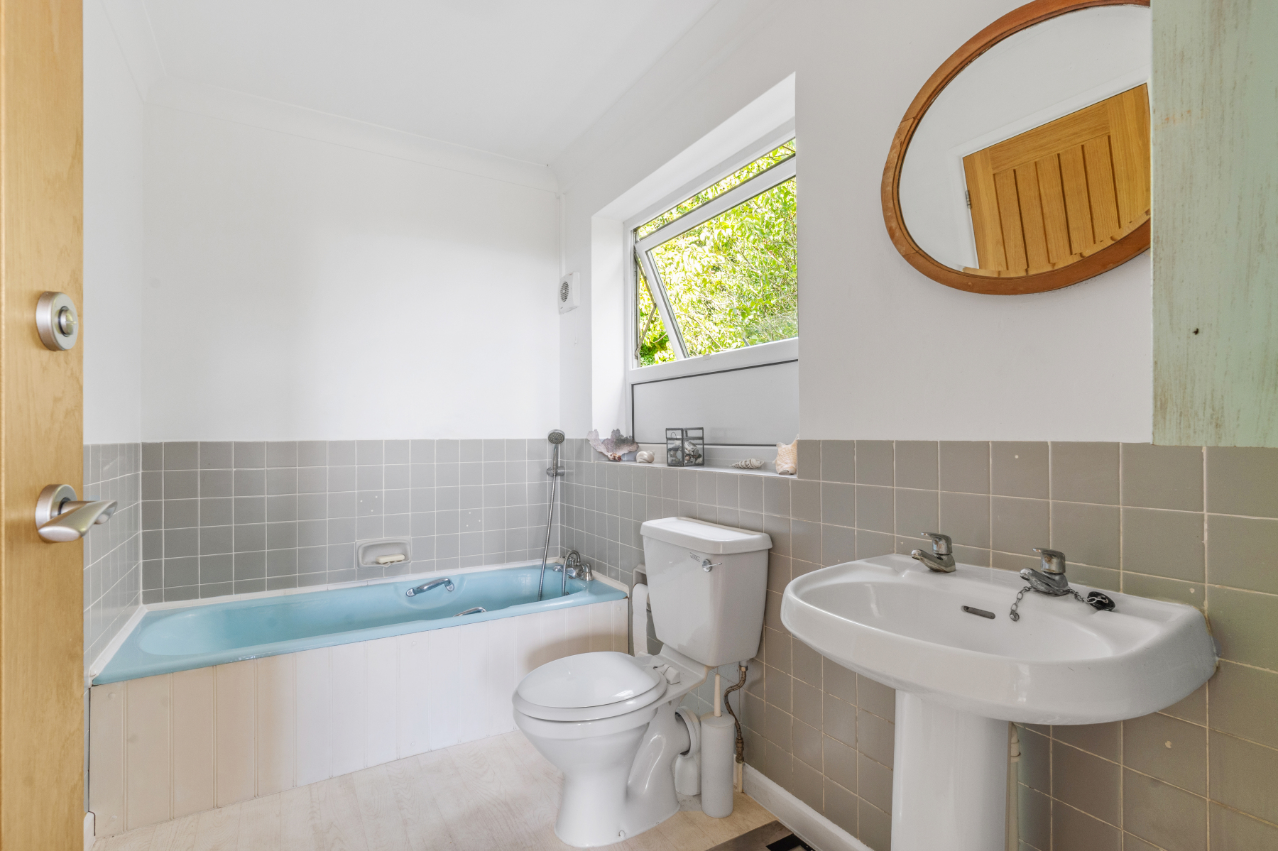 At the opposite end of the ground floor lies BEDROOM TWO, a well-proportioned double room enjoying sea views and direct Jack and Jill access to the family bathroom, making it an ideal guest retreat. The BATHROOM is fitted with a bath and shower over, pedestal basin, W.C., heated towel rail, and part-tiled walls.