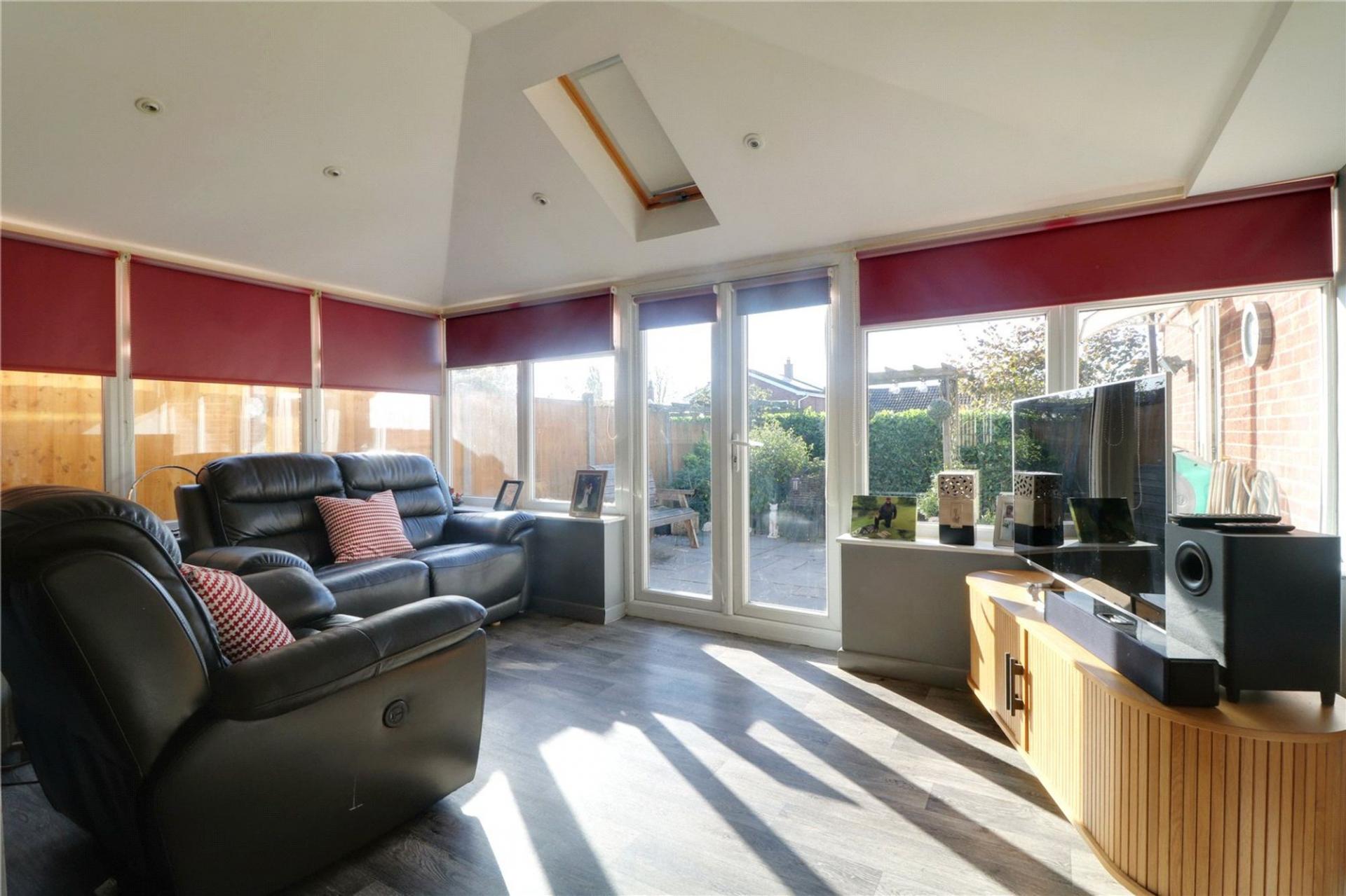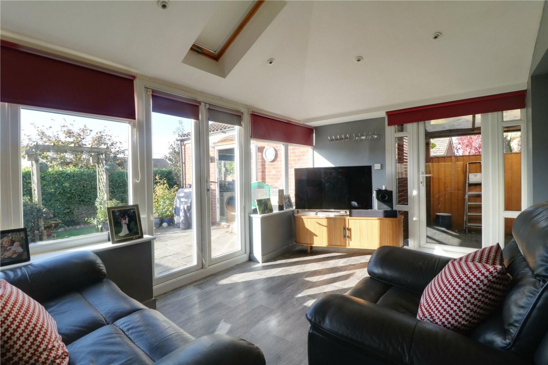 With a fully insulated roof and a sky light, inset spotlights, surrounding uPVC with two double glazed doors allows access to the patio area and a further side double glazed door allows access to the side driveway.