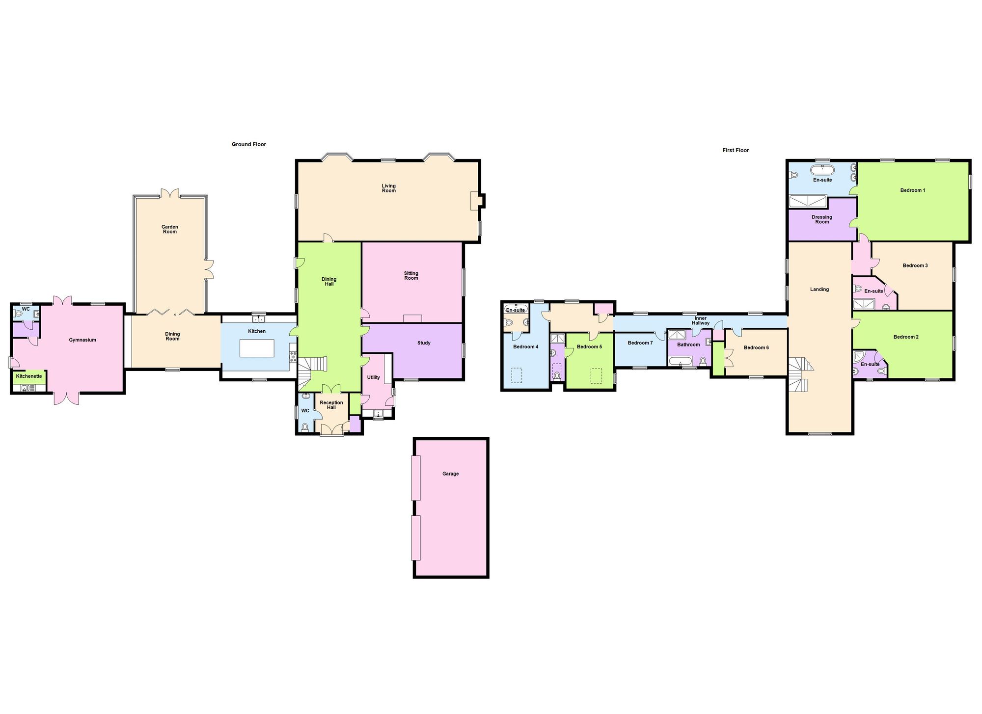 - Seven bedrooms accompanied by five en-suites