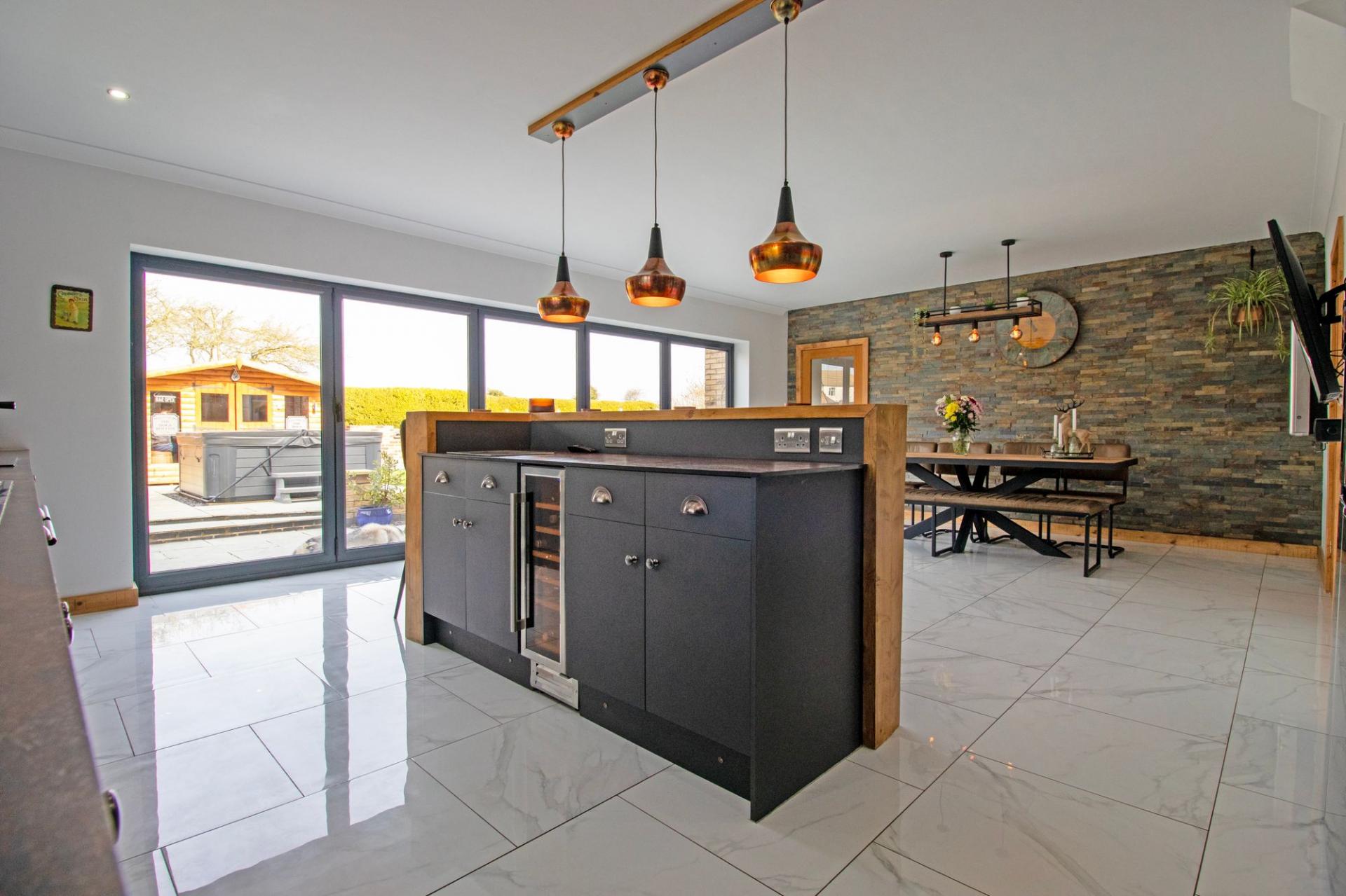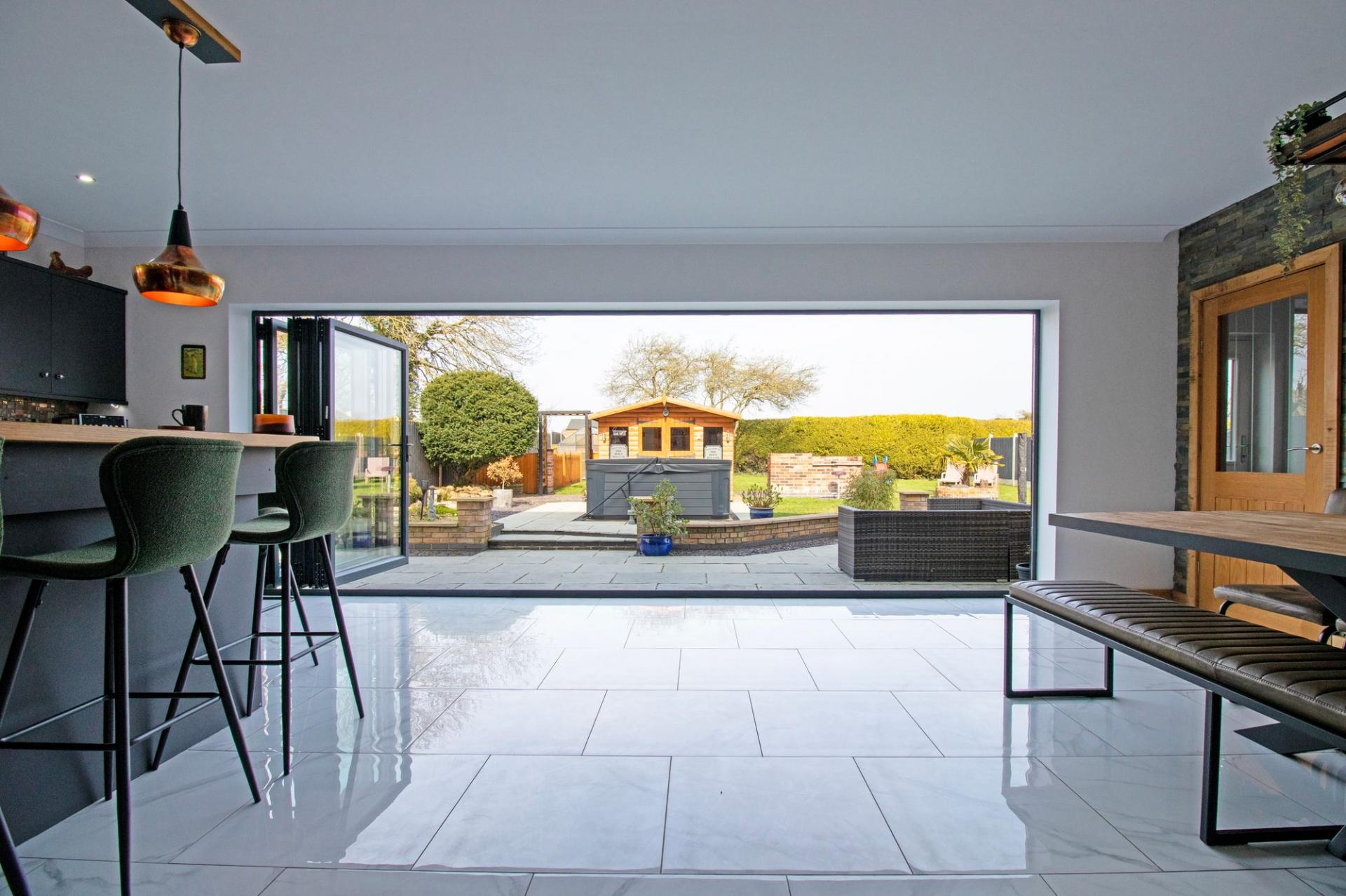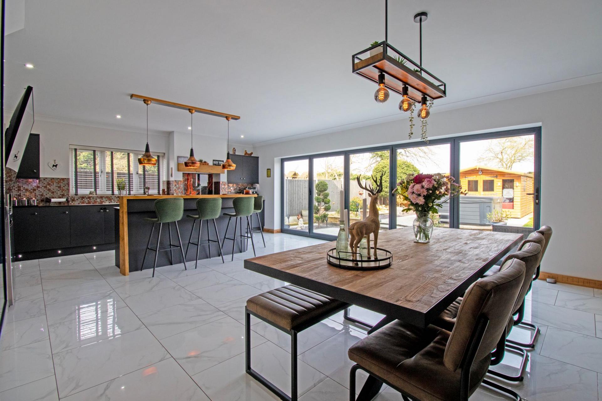 - IMPRESSIVE OPEN PLAN KITCHEN DINER WITH BI-FOLDING DOORS