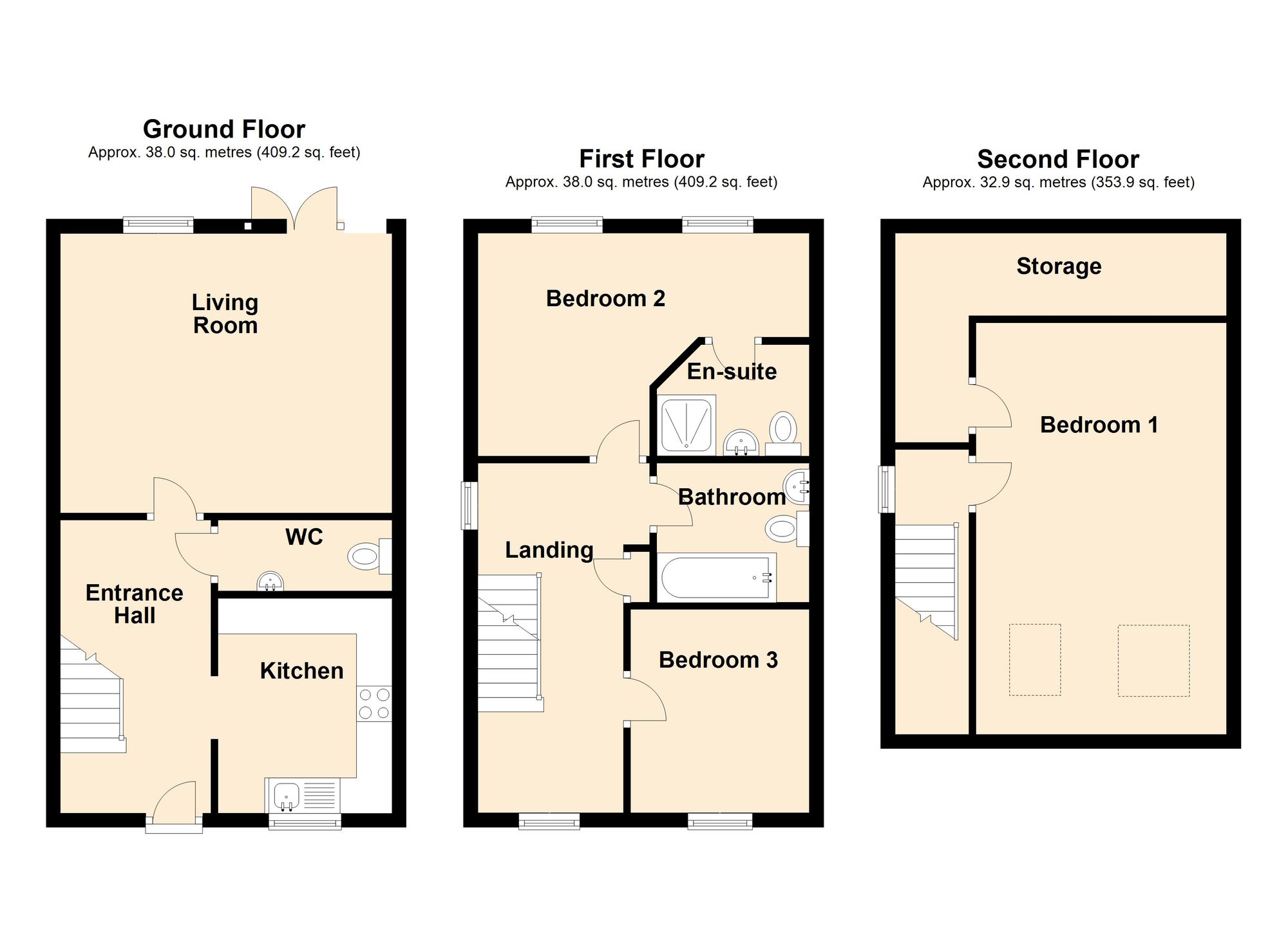 3 DOUBLE BEDROOMS SOUTH FACING REAR GARDEN ** A deceptively spacious modern end town house located within walking distance to the town centre offering well presented accommodation arranged over 3 floors. Thought ideal for a couple or family with an internal inspection essential to fully appreciate. The accommodation comprises, front reception hallway, cloakroom, fitted kitchen and a large rear living room. The first floor provides 2 initial bedrooms with an en-suite shower room and main family bathroom. The second floor provides a large master bedroom. Parking is available to the front with side access leading to a private south facing rear garden. Finished with uPvc double glazing and a modern gas fired central heating system. View via our Brigg office.