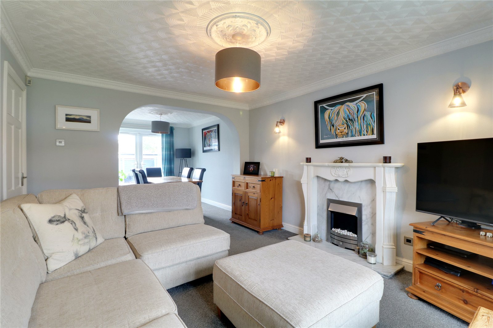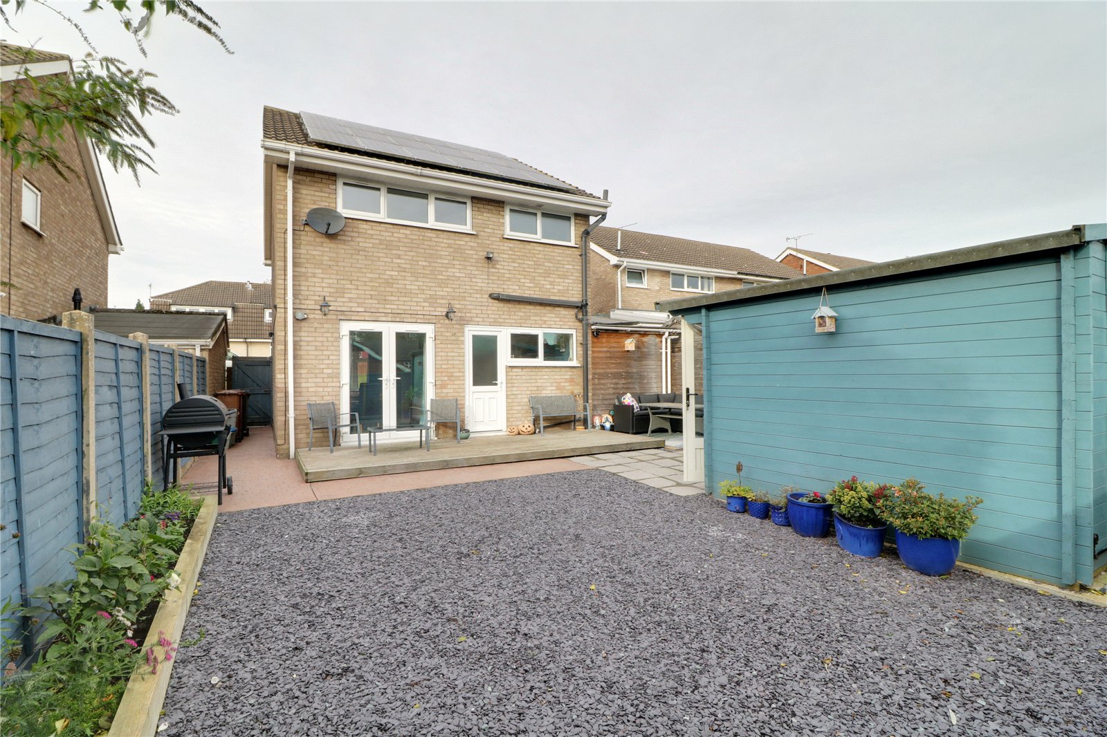** CUL-DE-SAC LOCATION ** WELL PRESENTED ACCOMMODATION THROUGHOUT ** PRIVATE SOUTH FACING GARDEN ** A traditional detached family home, set within a well-established cul-de-sac position in the popular township of Broughton. The well presented and proportioned accommodation has been fully improved throughout and is thought an ideal purchase for a young family or couple. Entering the property, you have a generous hallway allowing access to a spacious lounge through dining room with twin French doors out to the rear garden. The stylish fitted modern kitchen completes the ground floor with modern shaker units and laminate work surfaces, as well as an integrated oven, hob and extractor fan. The first floor provides a central landing leading off to three sizable bedrooms all served by an attractive family bathroom suite. Occupying a private enclosed low maintenance garden with both raised decked and flagged patio area ideal for entertaining friends and family during the summer months. The garden also provides a fantastic timber framed outbuilding with power and lighting and can be utilised usefully as a home office, gym or summer house. To the front of the property enjoys a large driveway complete with a spacious garage allowing parking for multiple vehicles along with an adjoining lawned garden. Full uPVC double glazing, gas fired central heating & solar panels. EPC Rating: B, Council Tax Band: B. Viewing comes highly recommended via our Brigg office. 01652 651777.