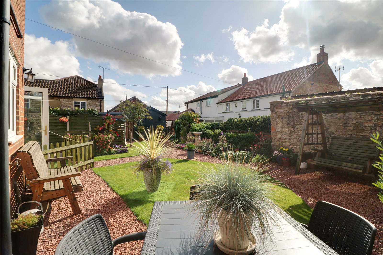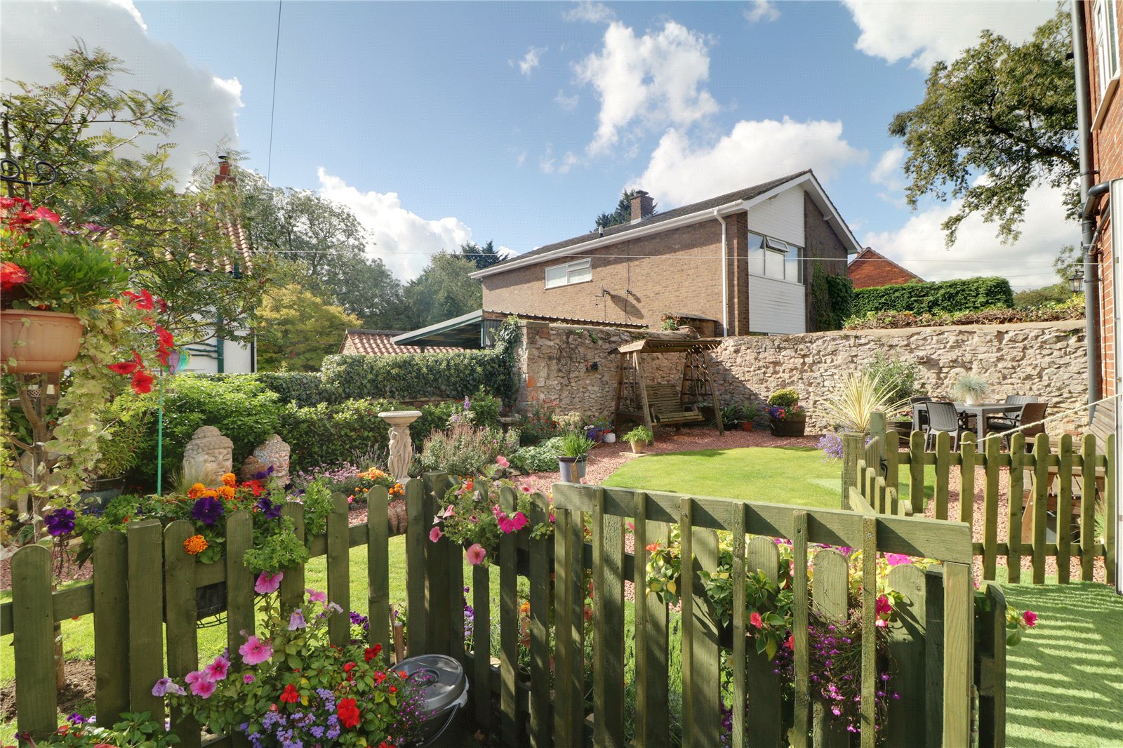Externally, the property provides ample parking with secure composite twin gates, leading to a beautifully maintained garden that features multiple seating areas and a timber storage shed.