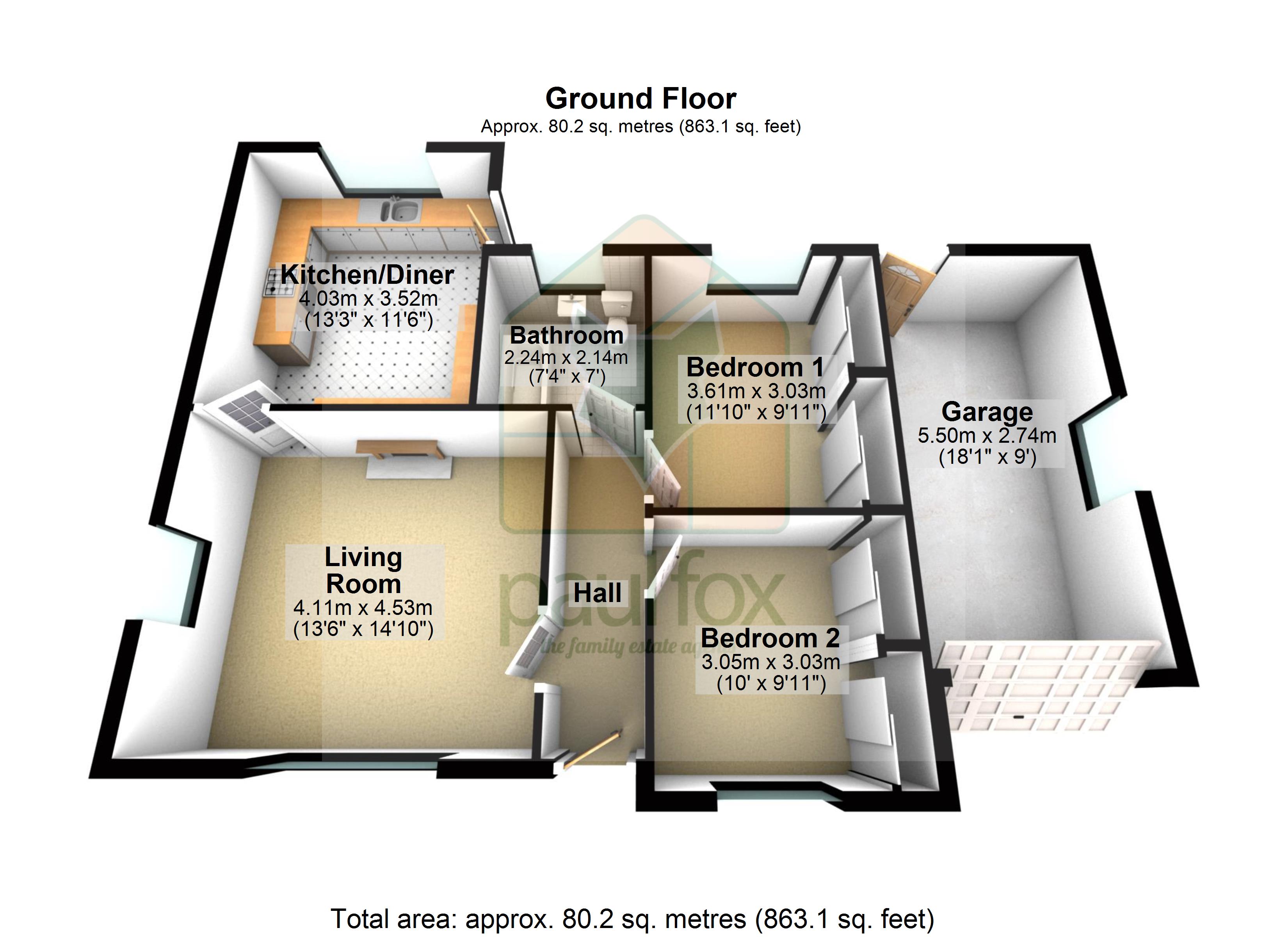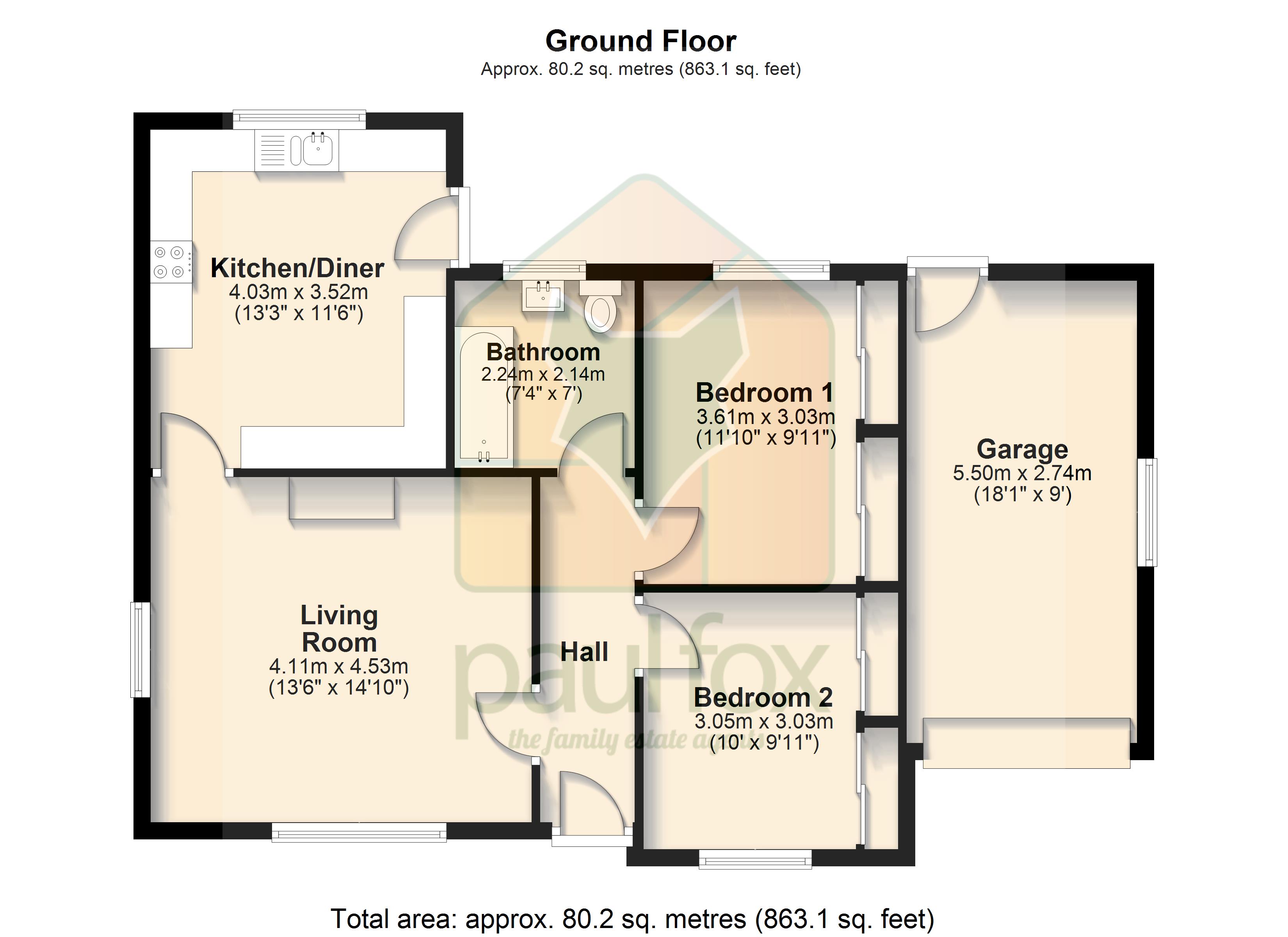Bedroom 2 10' x 9'11" (3.05m x 3.02m).