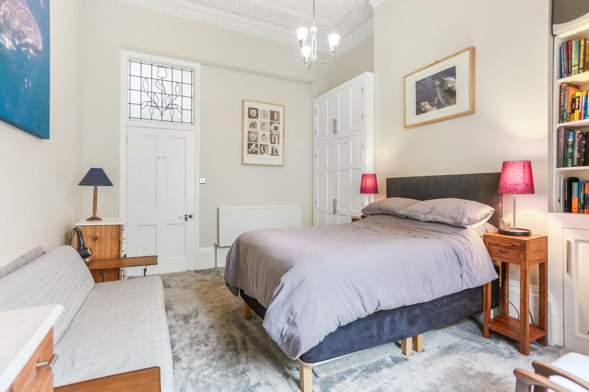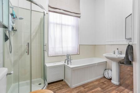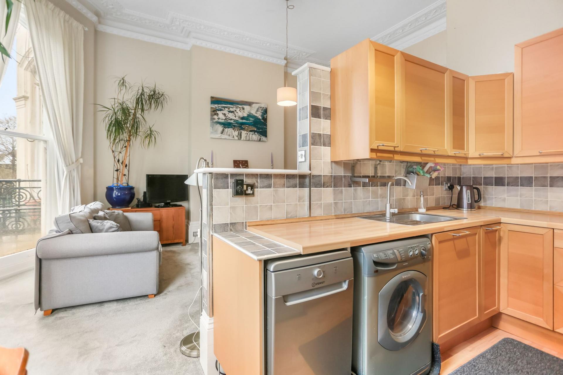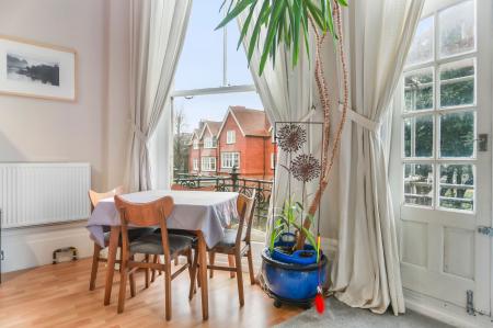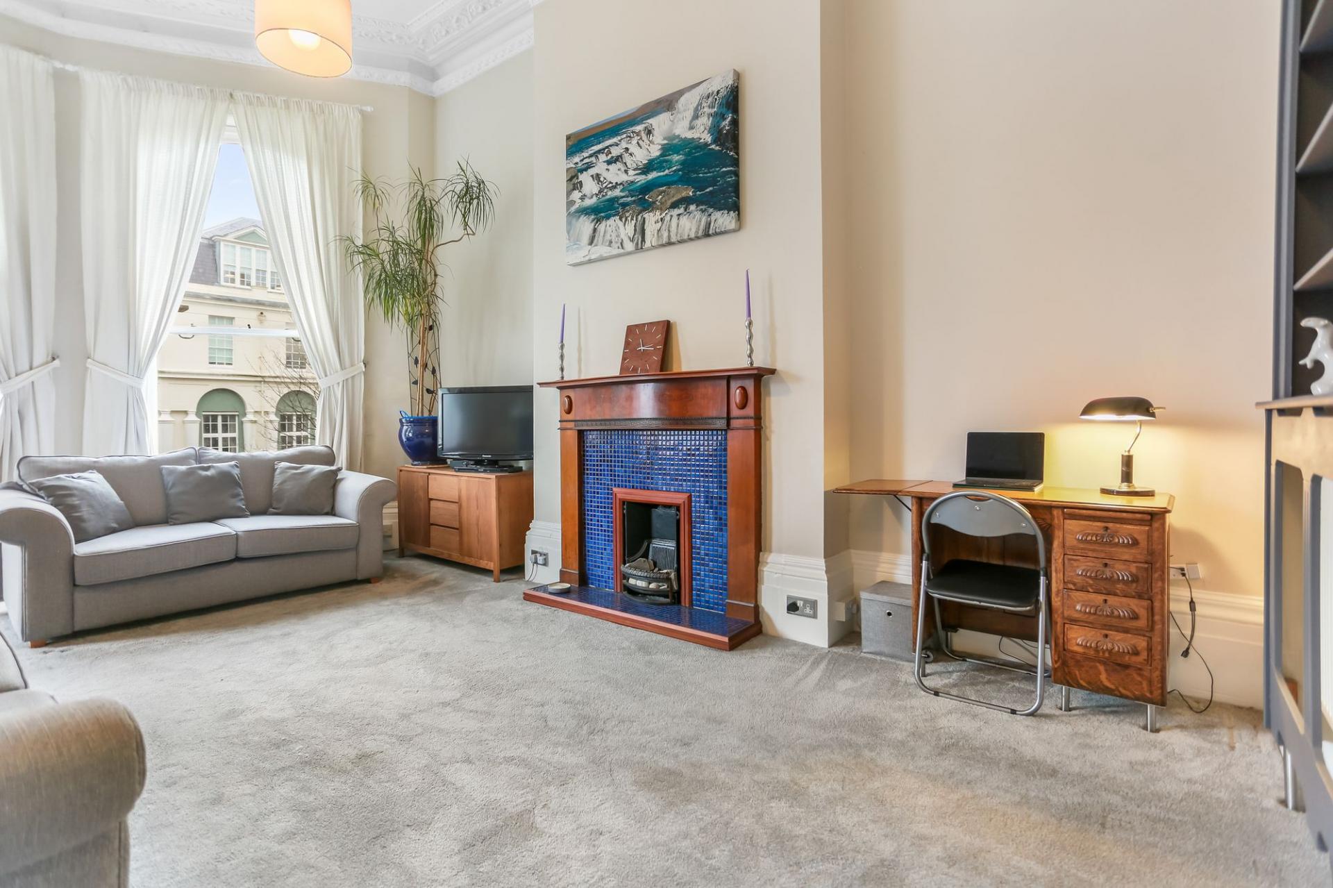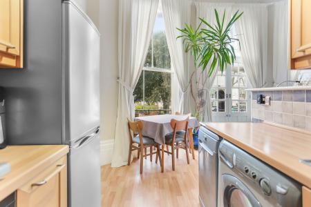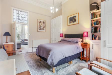 This generously proportioned and beautifully presented apartment occupies the first floor of an attractive period building in a desirable location. Filled with natural light, the spacious living room benefits from wonderful period features, including high ceilings, ornate cornicing, floor-to-ceiling sash windows and wooden patio doors leading to the west-facing balcony. The fully-fitted wooden kitchen has been thoughtfully designed to sit separately from the living area behind a dividing wall, while still allowing natural light to flow through and create a sense of connection.