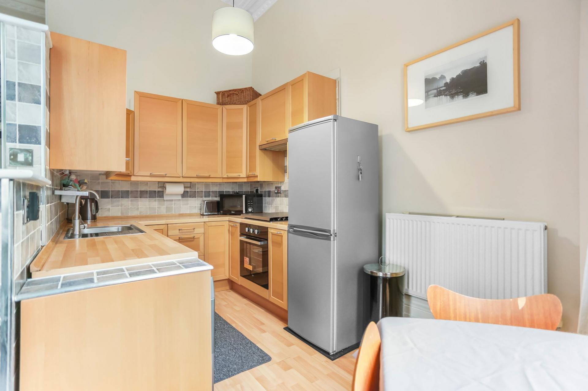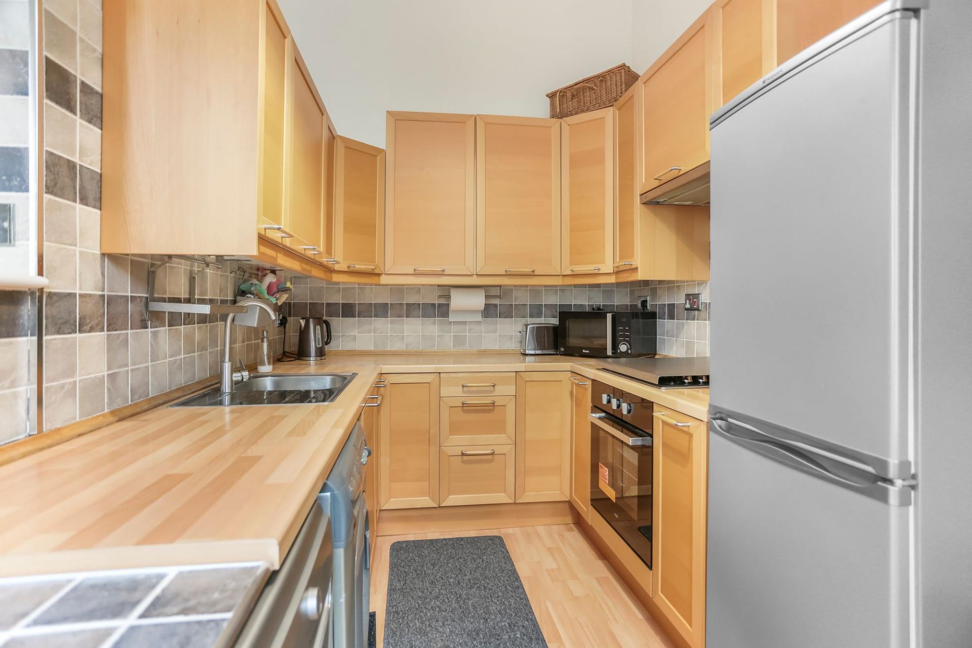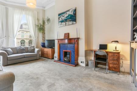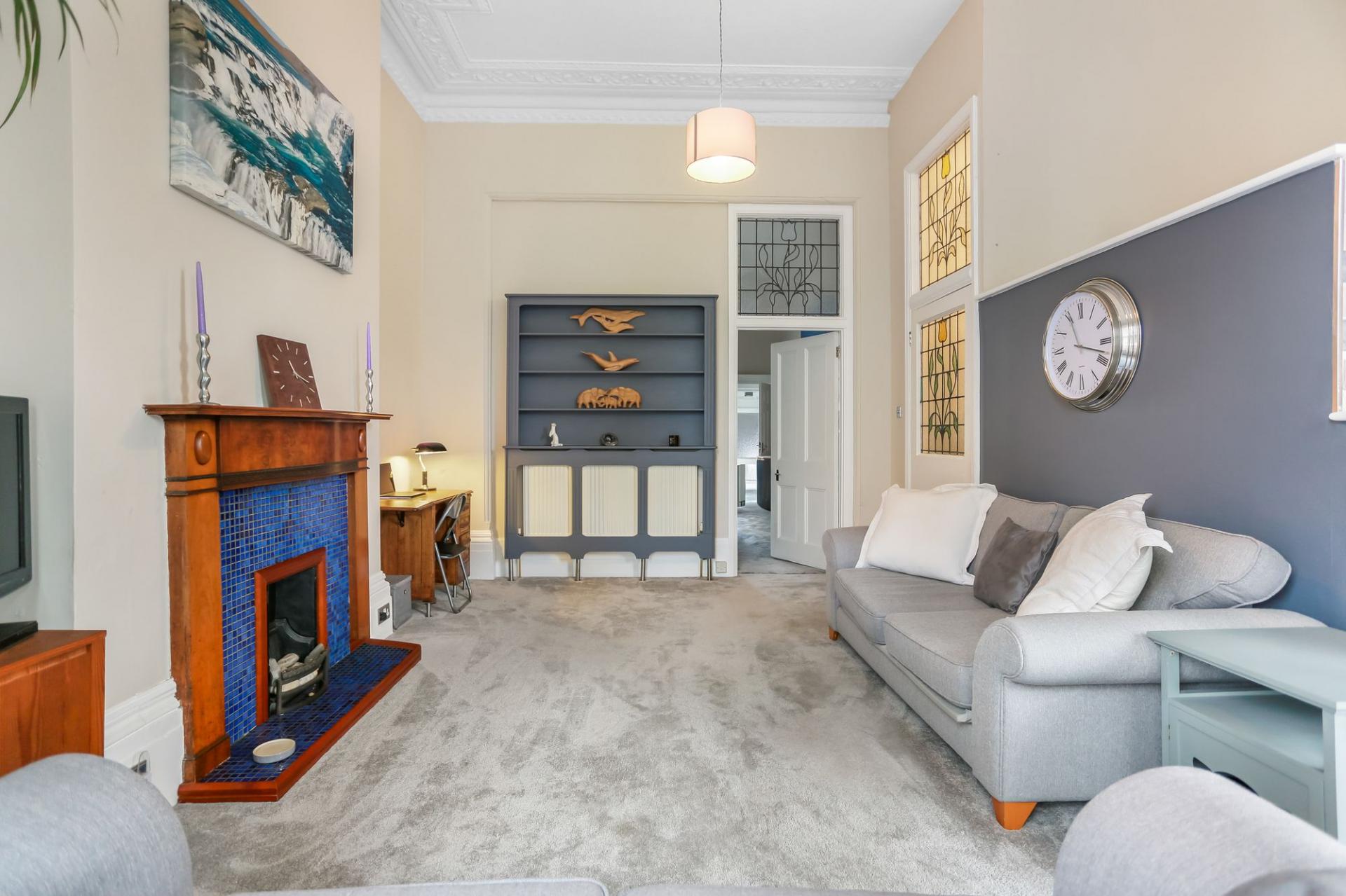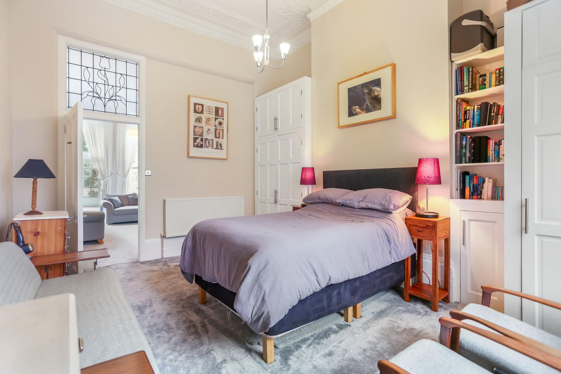 This generously proportioned and beautifully presented apartment occupies the first floor of an attractive period building in a desirable location. Filled with natural light, the spacious living room benefits from wonderful period features, including high ceilings, ornate cornicing, floor-to-ceiling sash windows and wooden patio doors leading to the west-facing balcony. The fully-fitted wooden kitchen has been thoughtfully designed to sit separately from the living area behind a dividing wall, while still allowing natural light to flow through and create a sense of connection.