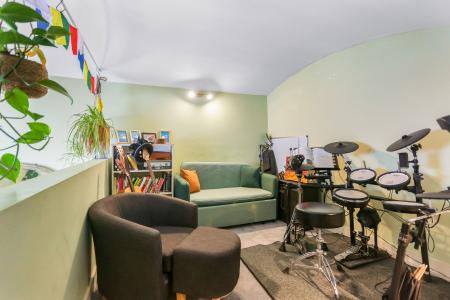 From the reception room, a mezzanine floor provides an additional bedroom and a substantial shower room, together with a versatile landing area currently arranged as an office and music room.