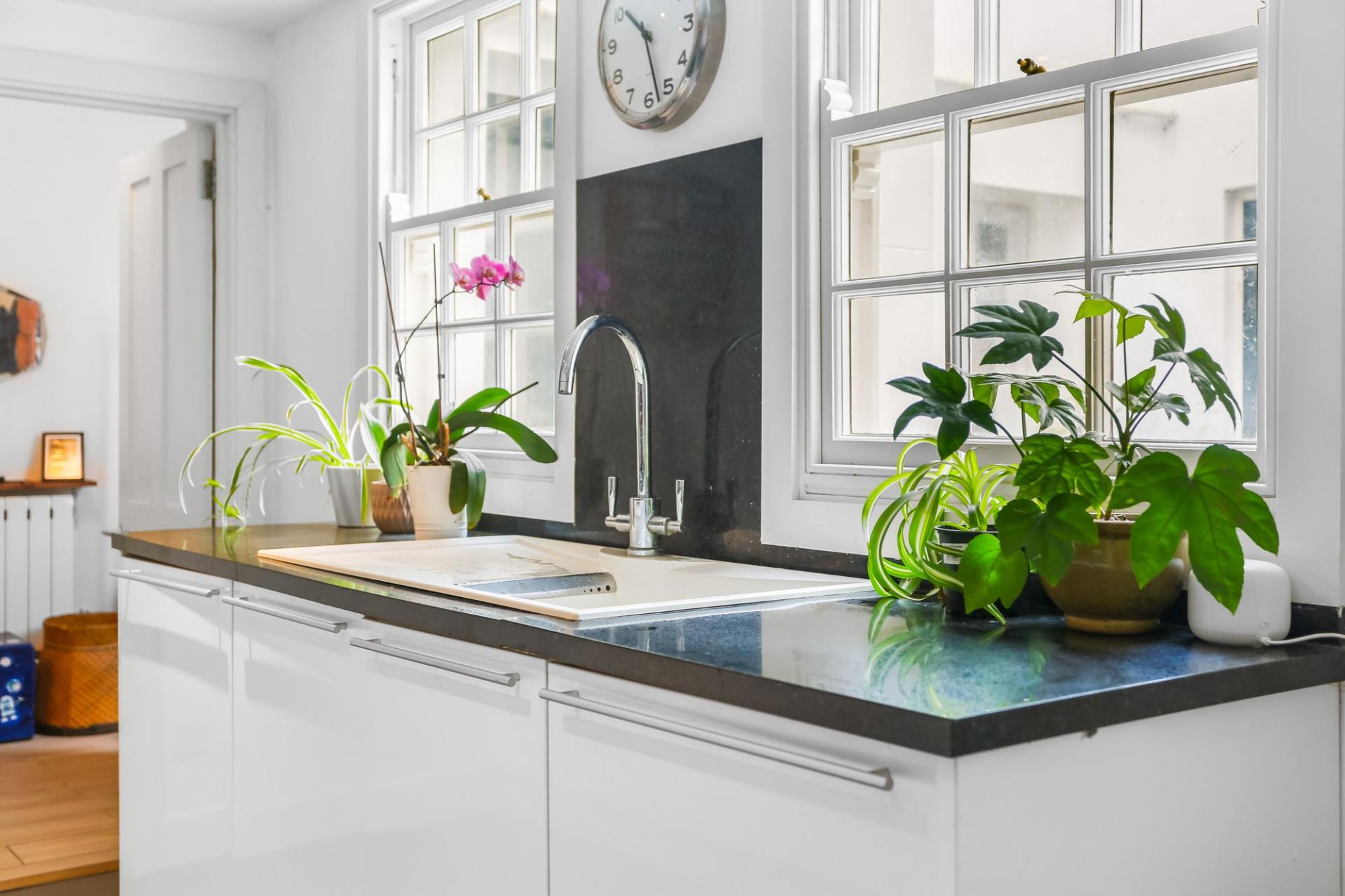 The welcoming entrance hallway creates an inviting first impression, complemented by a versatile and generous storage area. The spacious reception/dining room features a strikingly high ceiling and beautiful mullion sash window, filling the room with natural light and offering a charming outlook across the rear patio. The bright, contemporary kitchen also overlooks this outdoor space. Two comfortable bedrooms and two modern bathrooms complete the principal level.