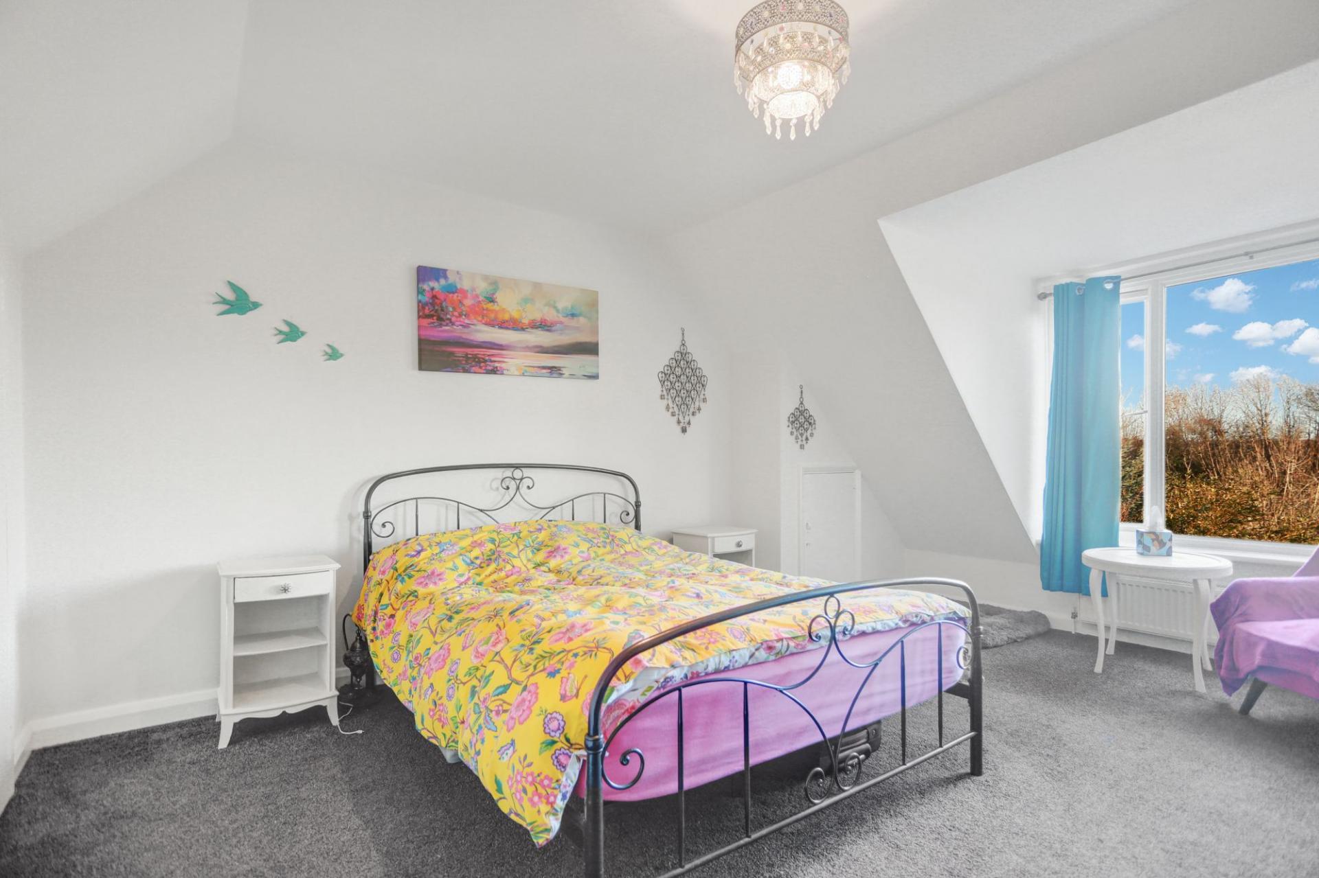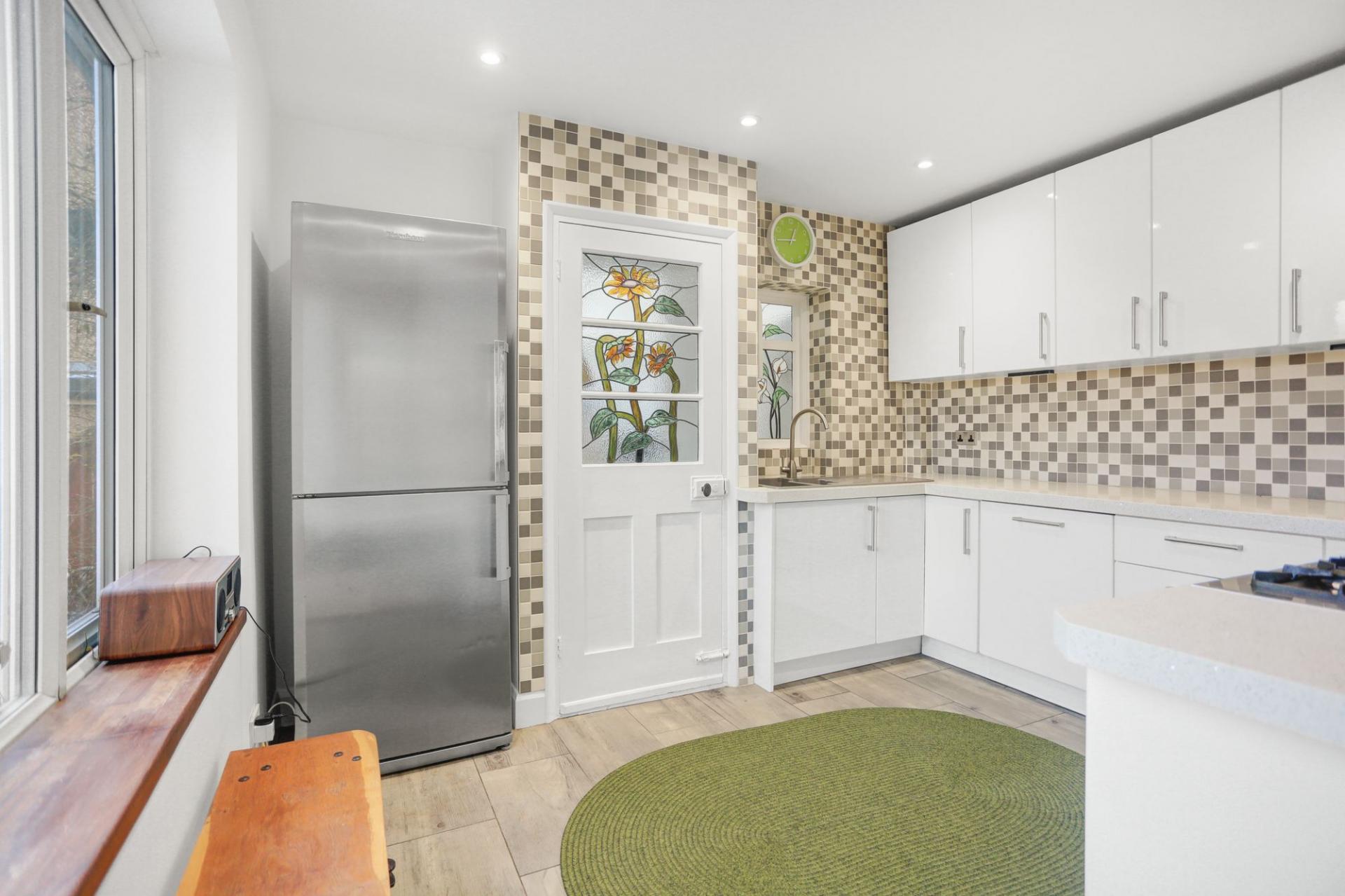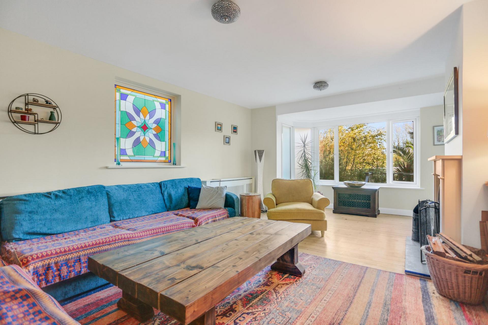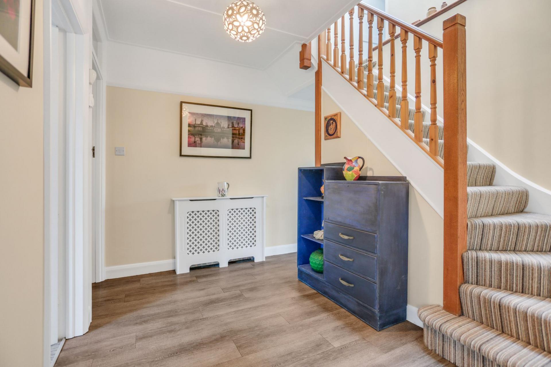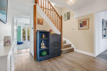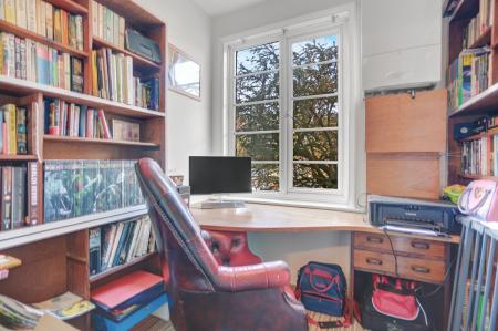 The welcoming entrance hall forms the hub of the ground floor, giving access to all principal rooms. The generous living room features a striking stained glass window, an attractive fireplace and a square bay window overlooking the rear garden, creating a bright and inviting space. Flowing from here, the sunny dining room is perfect for both everyday meals and entertaining. A ground-floor bedroom, a separate study and a convenient cloakroom complete this level. Also on this floor, the converted garage offers excellent potential for additional living accommodation.