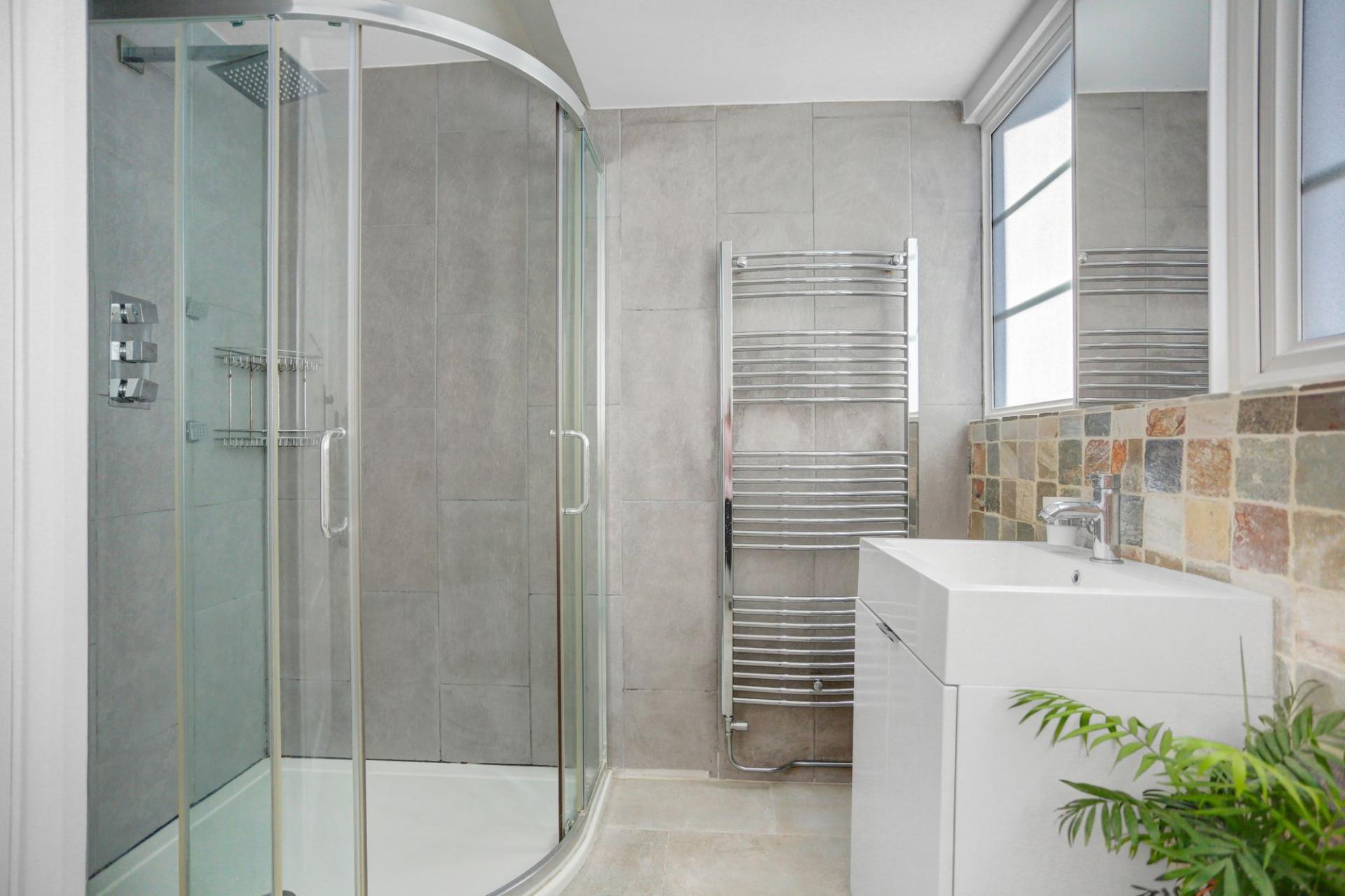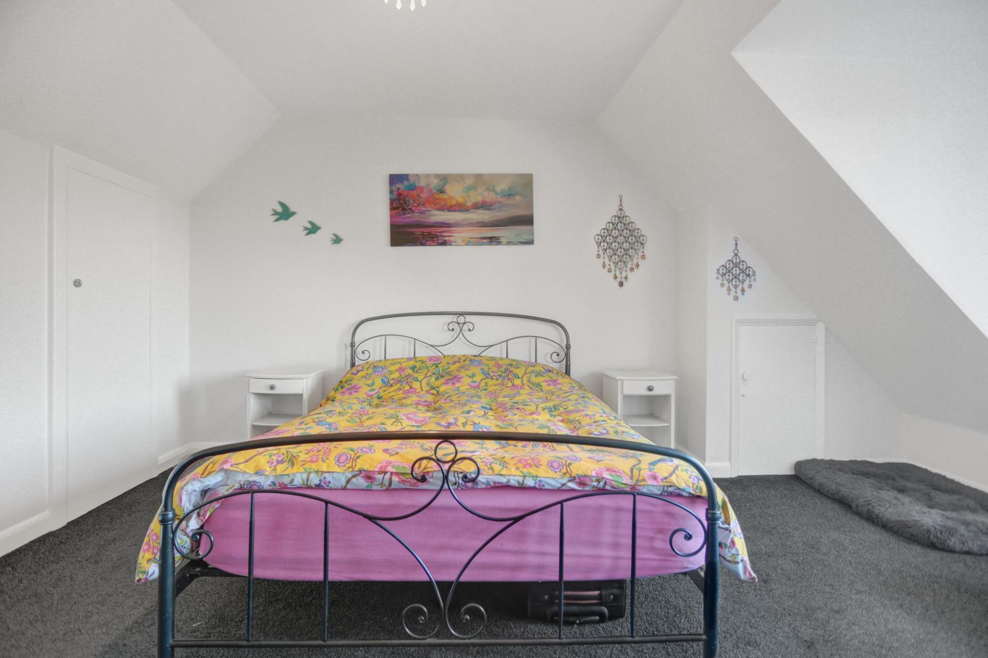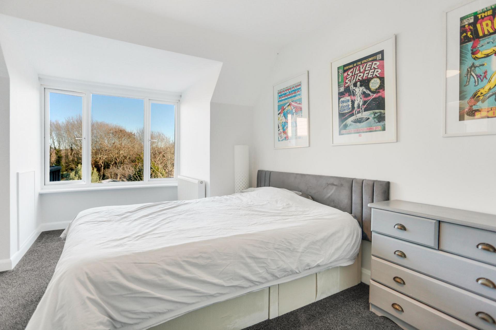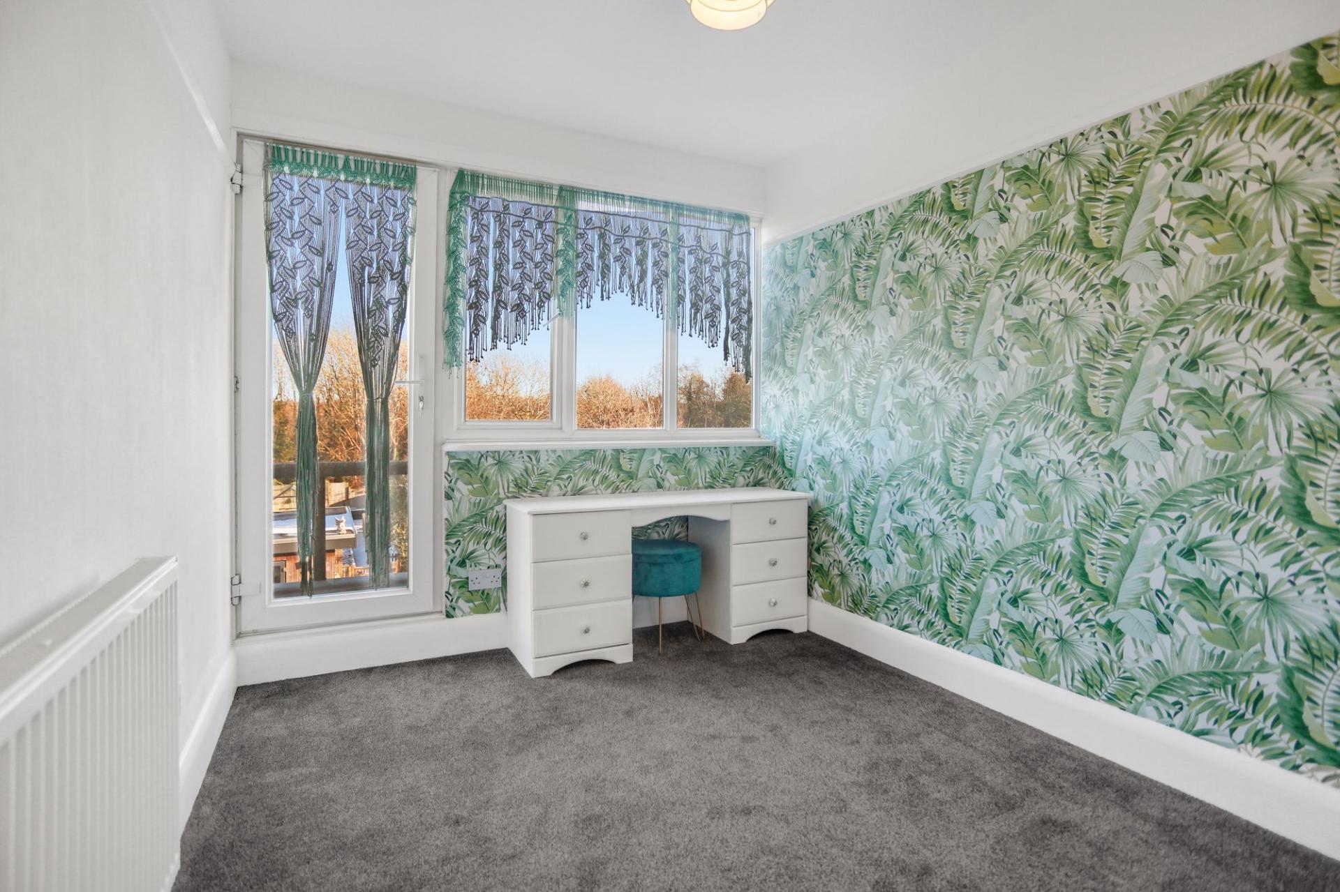Upstairs, there are two well-proportioned double bedrooms with ample storage, along with a further bedroom that benefits from a balcony enjoying views over the garden and beyond.