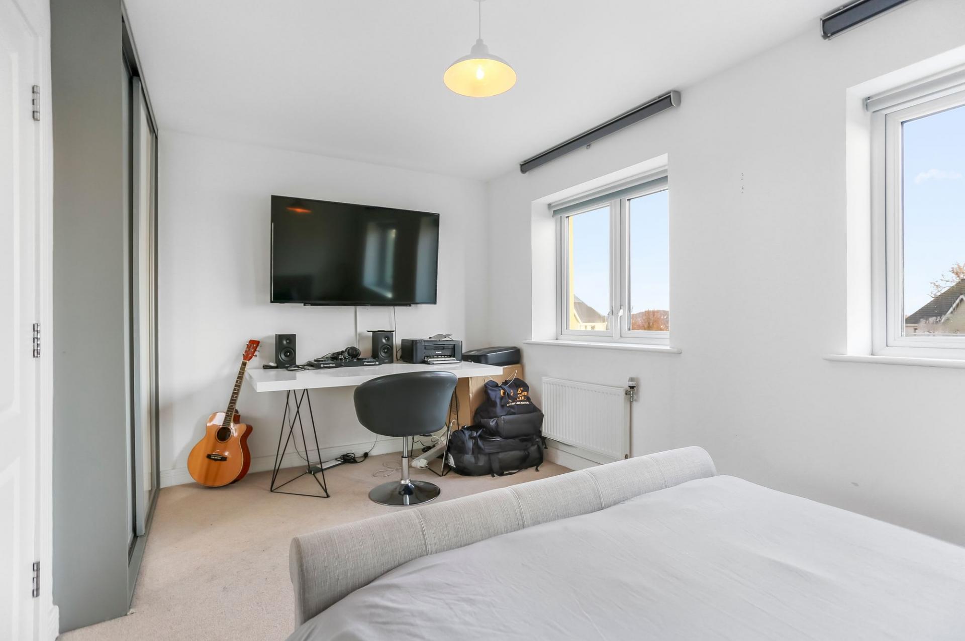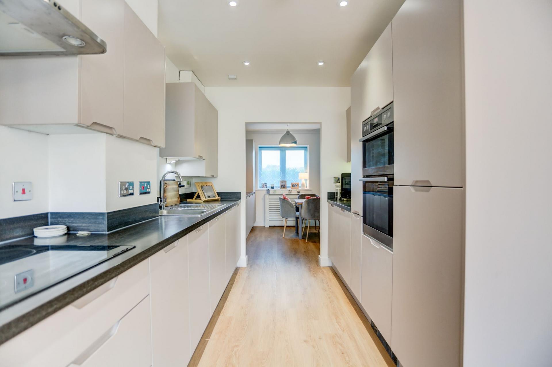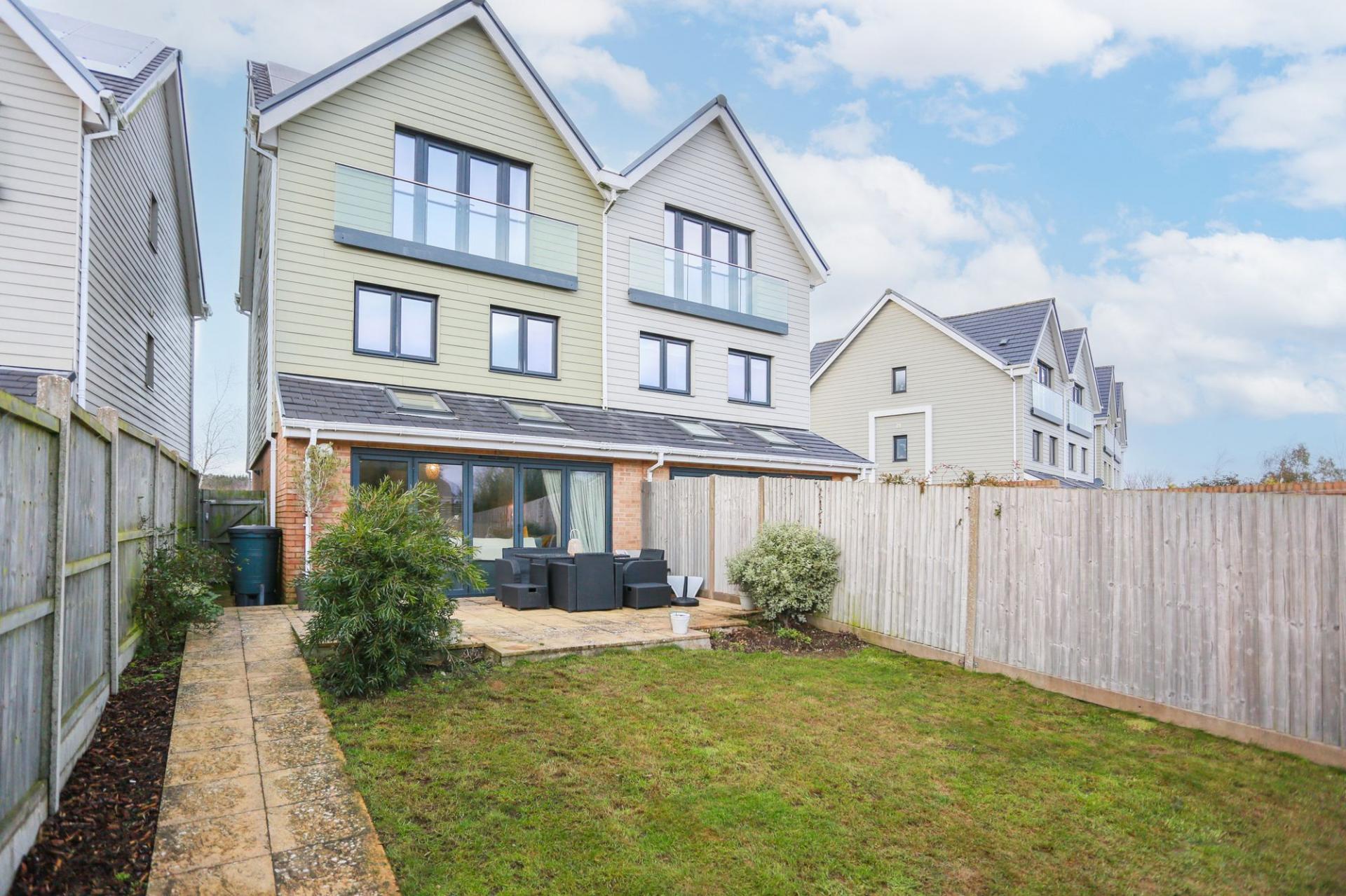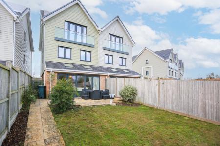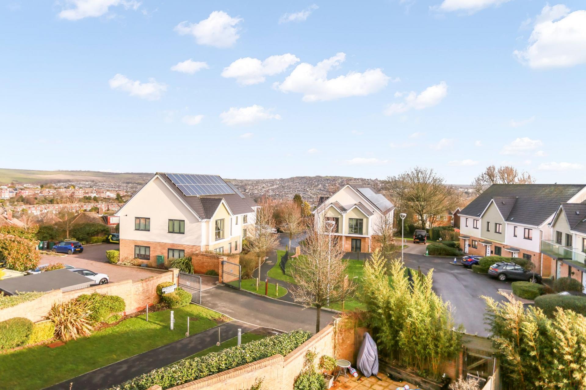 Outside, the south east facing rear garden has been thoughtfully landscaped and offers a good level of privacy. The property further benefits from eco friendly solar panels and two allocated parking spaces within a private gated car park, along with ample visitor parking.