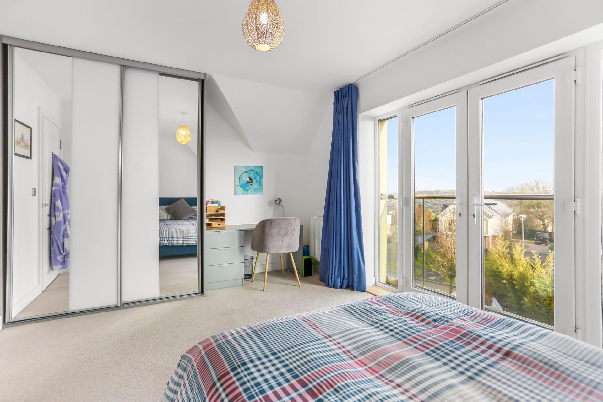 On the first floor are two well-proportioned double bedrooms, with one enjoying Juliette balconies overlooking the green, making it equally well suited for use as a second reception room. A stylish family bathroom is also located on this floor. The top floor is home to the principal bedroom, complete with fitted wardrobes, a modern en suite shower room and a private balcony, which is a real highlight of the home, offering a wonderful elevated outlook and an ideal space to relax. The fourth double bedroom is also located on this floor and benefits from double French doors, providing excellent flexibility for use as a bedroom, home office or guest suite.