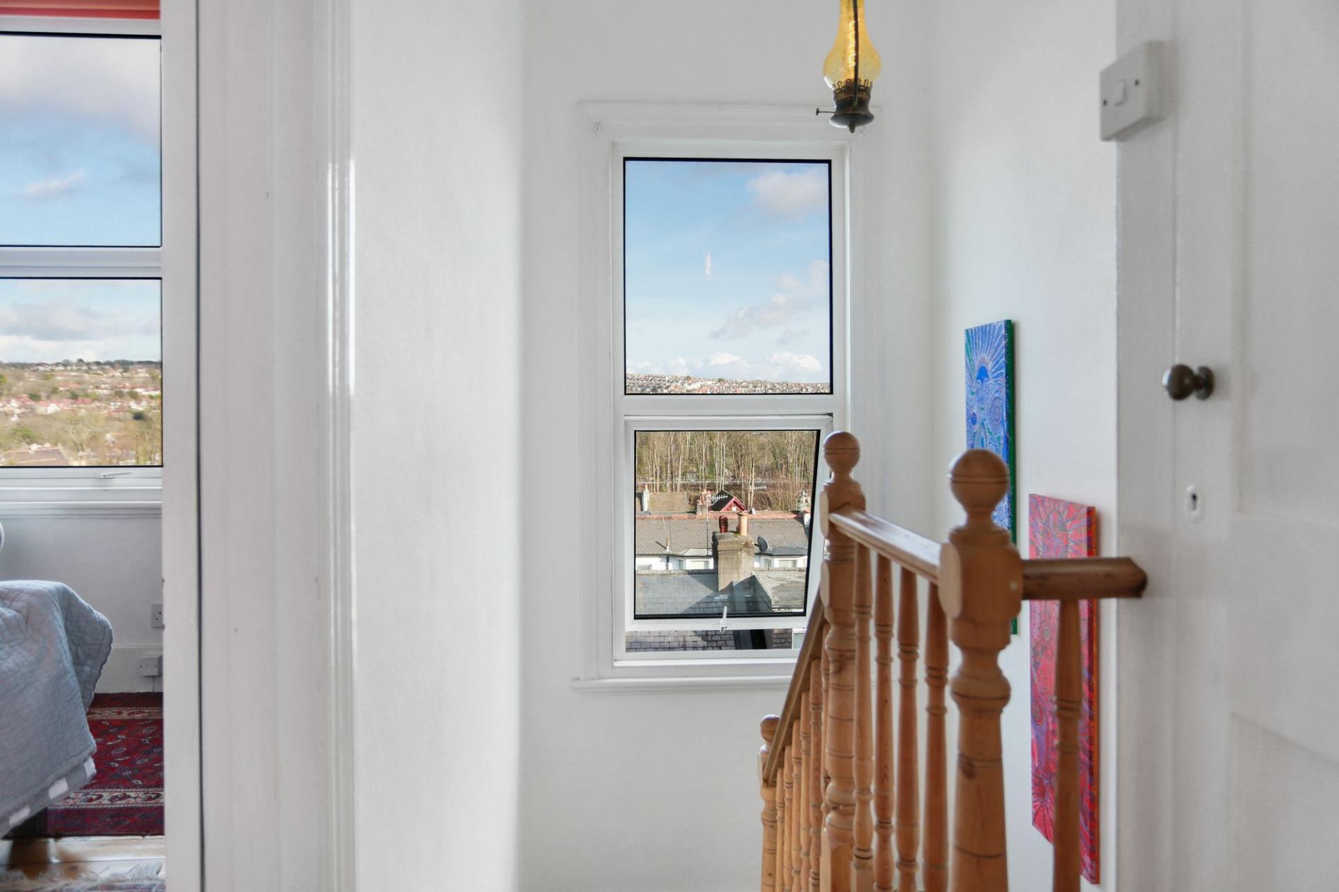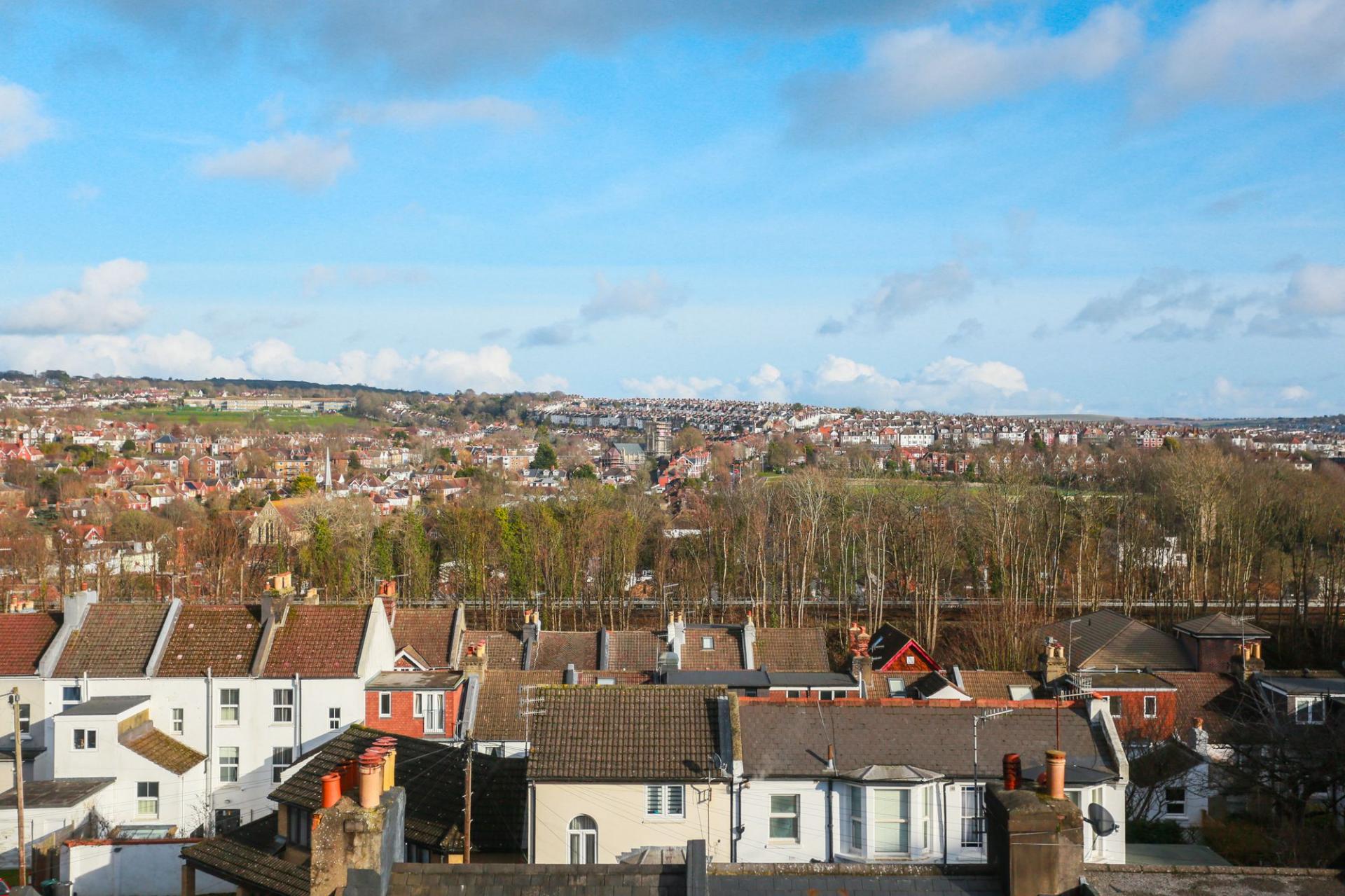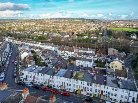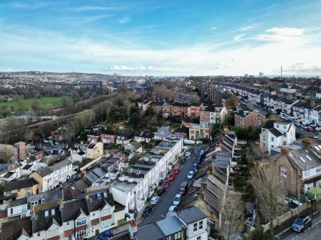 This delightful family home is further enhanced by a charming black and white period tiled pathway, decorative wrought ironwork, and impressive views across Brighton.