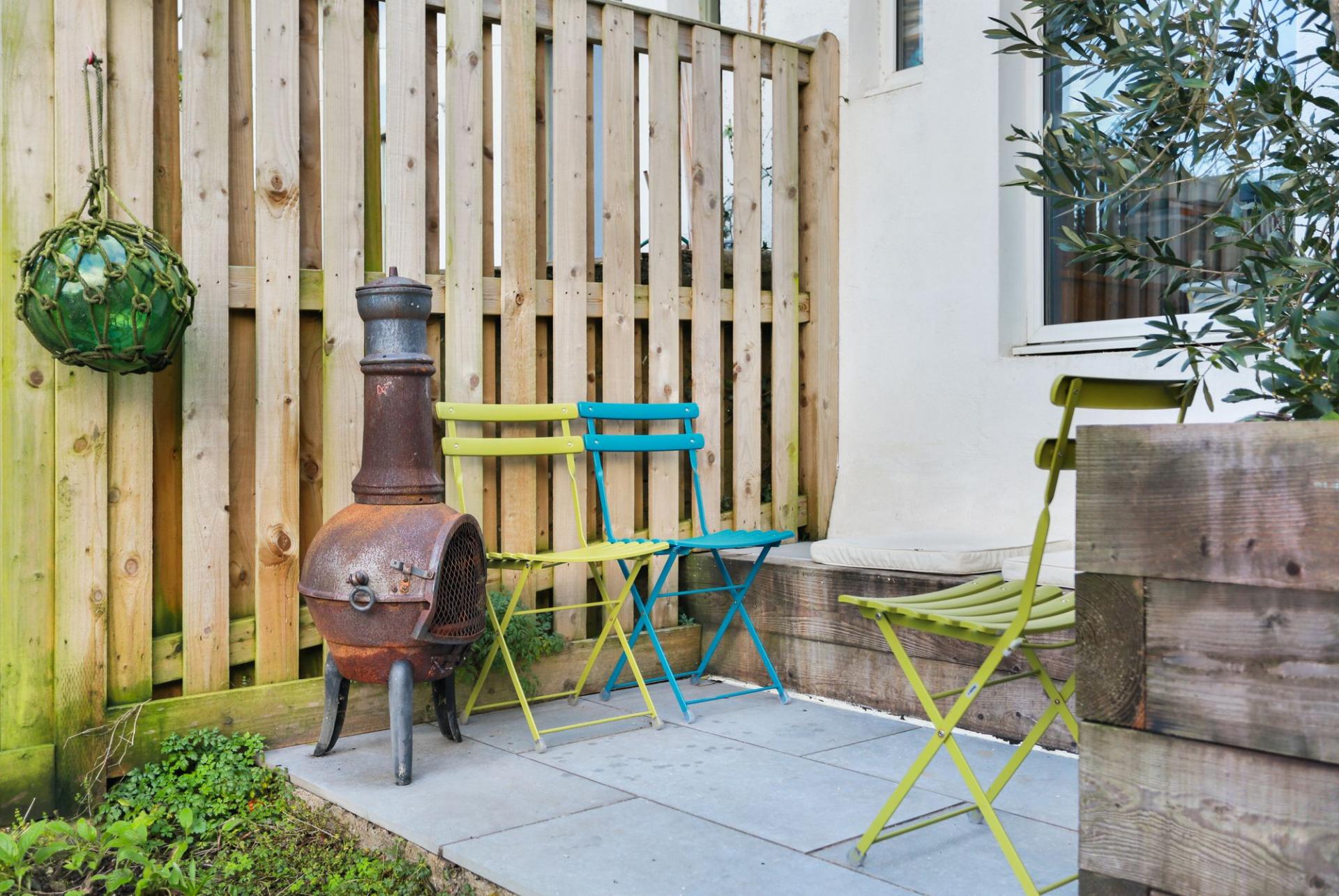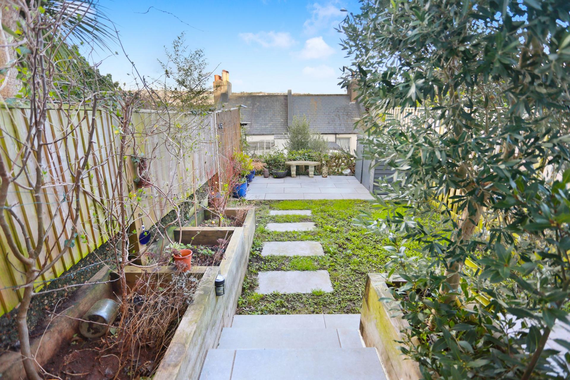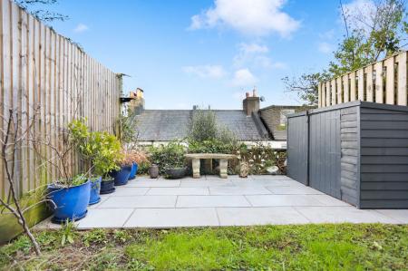 To the rear, the landscaped garden is designed to be low-maintenance and drought-tolerant; this wildflower sanctuary springs into life for the summer. Featuring a variety of fruit trees and wooden sleeper borders, the garden serves as a peaceful sun trap -ideal for morning coffees from April through to October.