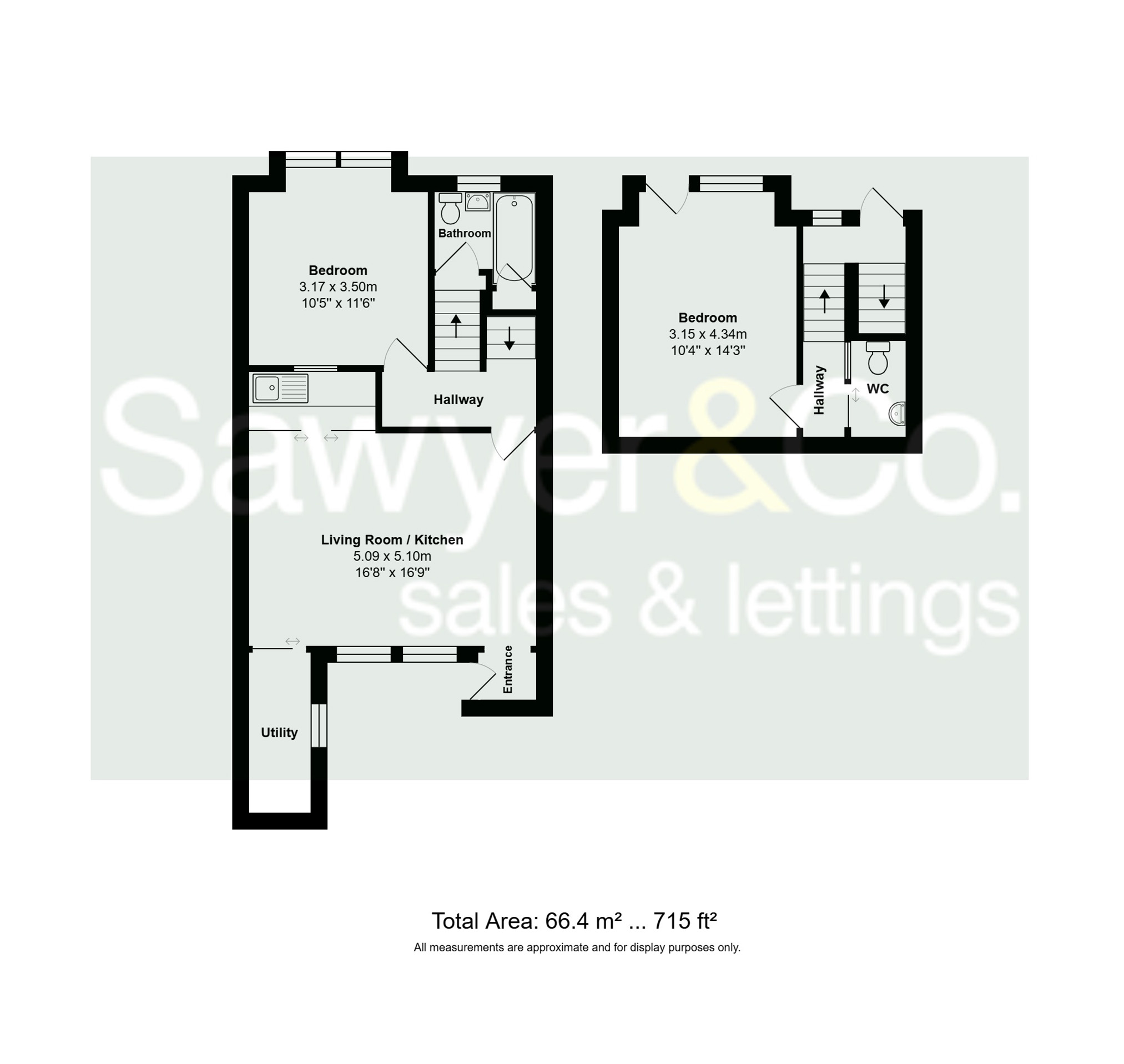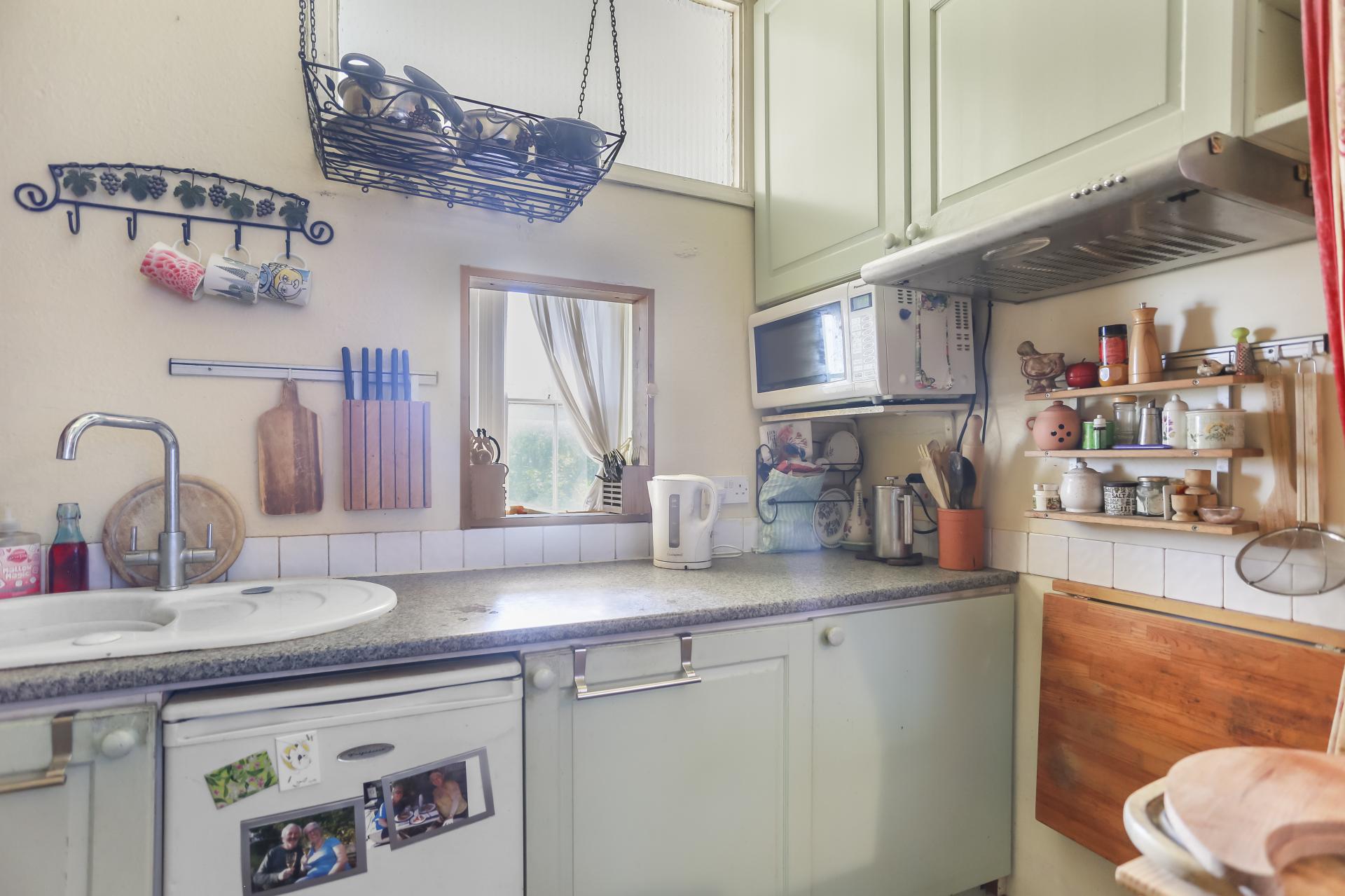Set on the basement and sub-basement floors of an attractive Edwardian mid-terrace house, this home measures in excess of 700sqft/66.4sqm. There is a good-sized lounge with two large sash windows and wood flooring to the front, which has direct access to the kitchenette.