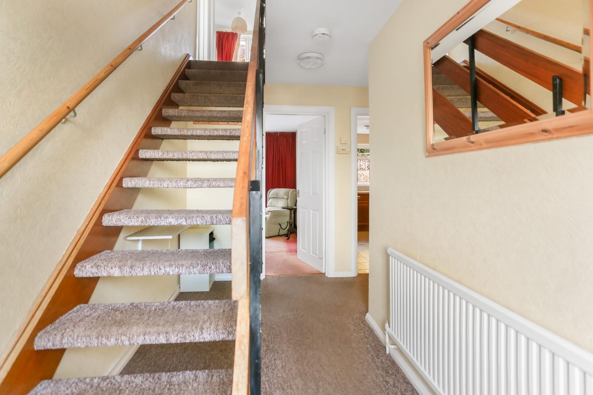 Arranged over two floors, this good-sized detached home has been lovingly owned by the same family since it was built approximately 60 years ago. The property features a bright and spacious open plan living room/diner with double patio doors leading directly out to the garden. The classic wooden kitchen offers plenty of wall-mounted base cabinets and worktop space, while a separate utility room and WC complete the ground floor. Upstairs, there are three double bedrooms, all of which benefit from fitted wardrobes, together with a family bathroom with a large corner bath and separate shower.