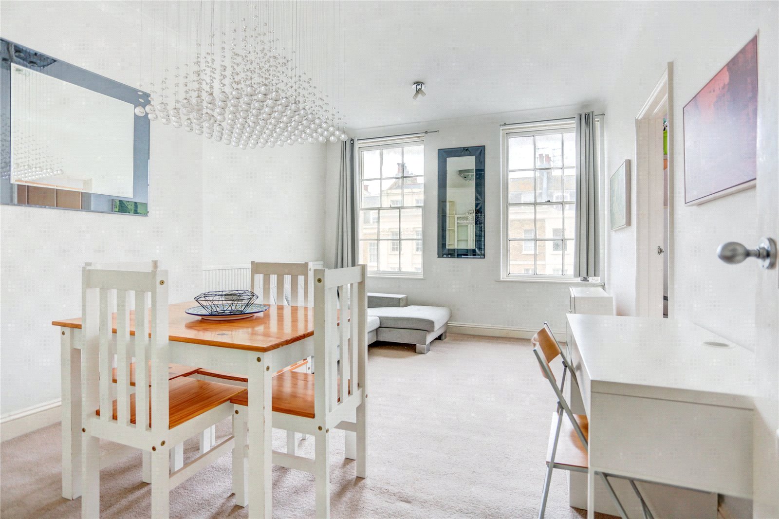 Set on the second floor of a magnificent grade II listed Regency building, this property features charming Crittall style sash windows that draw in plenty of natural light. The apartment boasts a spacious west facing lounge/diner with a separate fitted kitchen set adjacent. There are two large double bedrooms, one having the benefit of a built-in wardrobe. The bathroom is an ample size and fitted with shower over bath, whilst a separate W/C is accessible from the hallway.