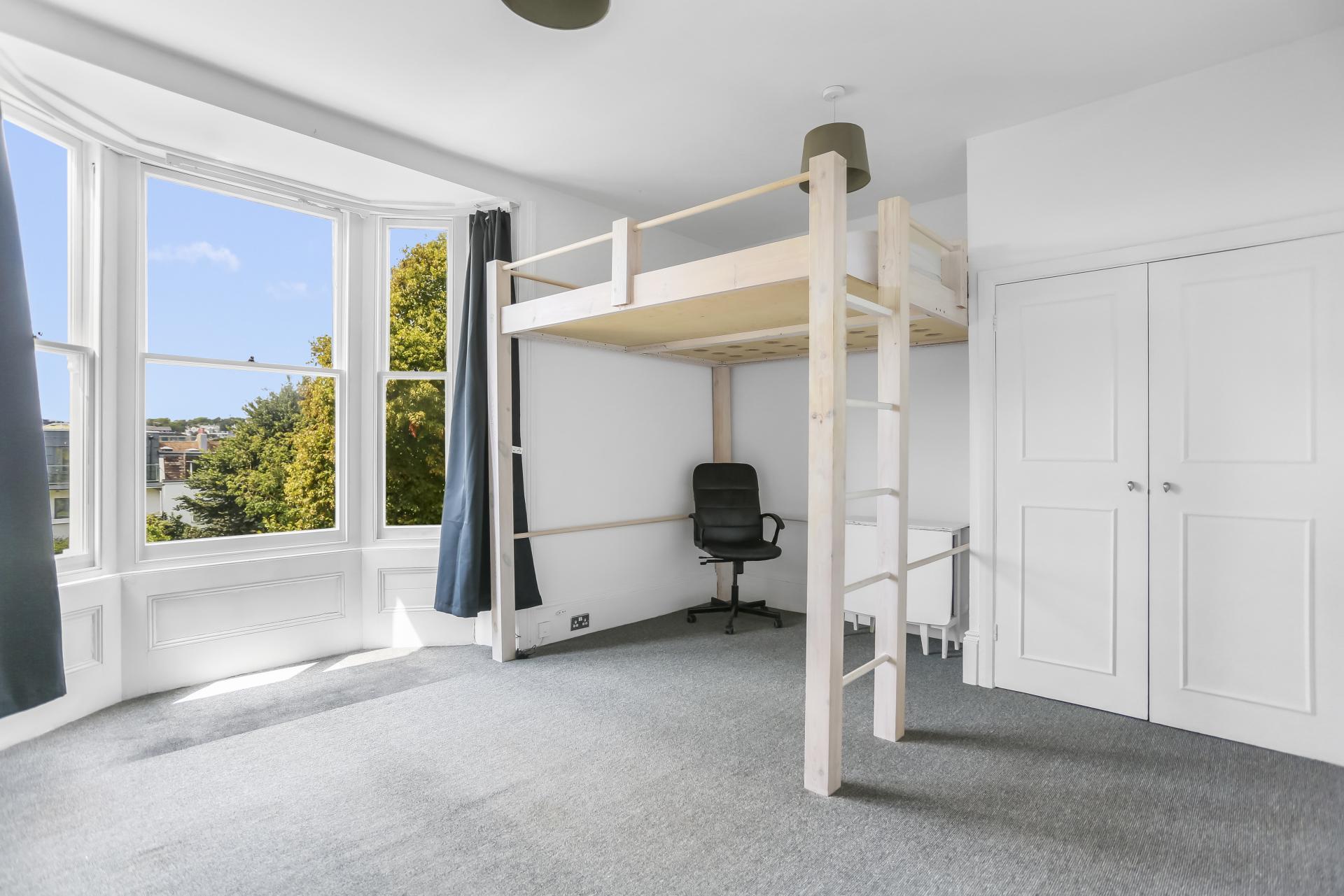 Centrally located moments from the amenities on St. James Street, the seafront and the city centre; a good sized STUDIO FIRST FLOOR APARTMENT with SEPARATE KITCHEN in a PERIOD BAY-FRONTED conversion. Sold with NO ONWARD CHAIN & a SHARE OF THE FREEHOLD.