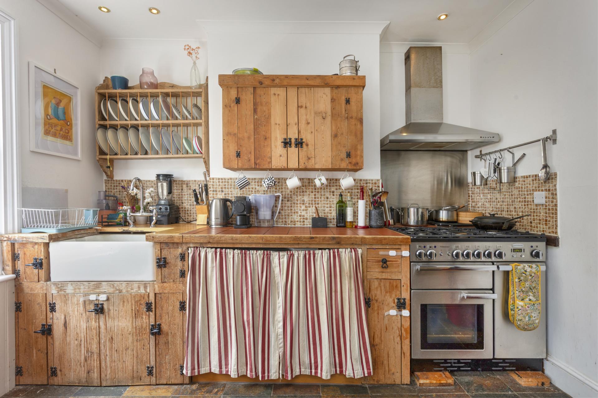 This maisonette has been neutrally decorated throughout and comprises a bright living room with a large bay window, a country-style kitchen/diner, two double bedrooms, and a family bathroom. The kitchen features rustic wooden kitchen units with a large butler sink for a welcoming and homely aesthetic. Access to the large loft space provides plenty of storage.