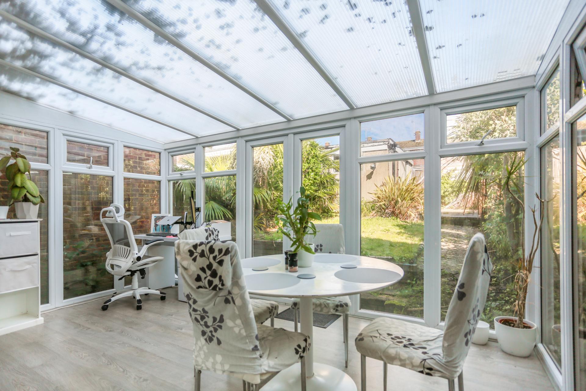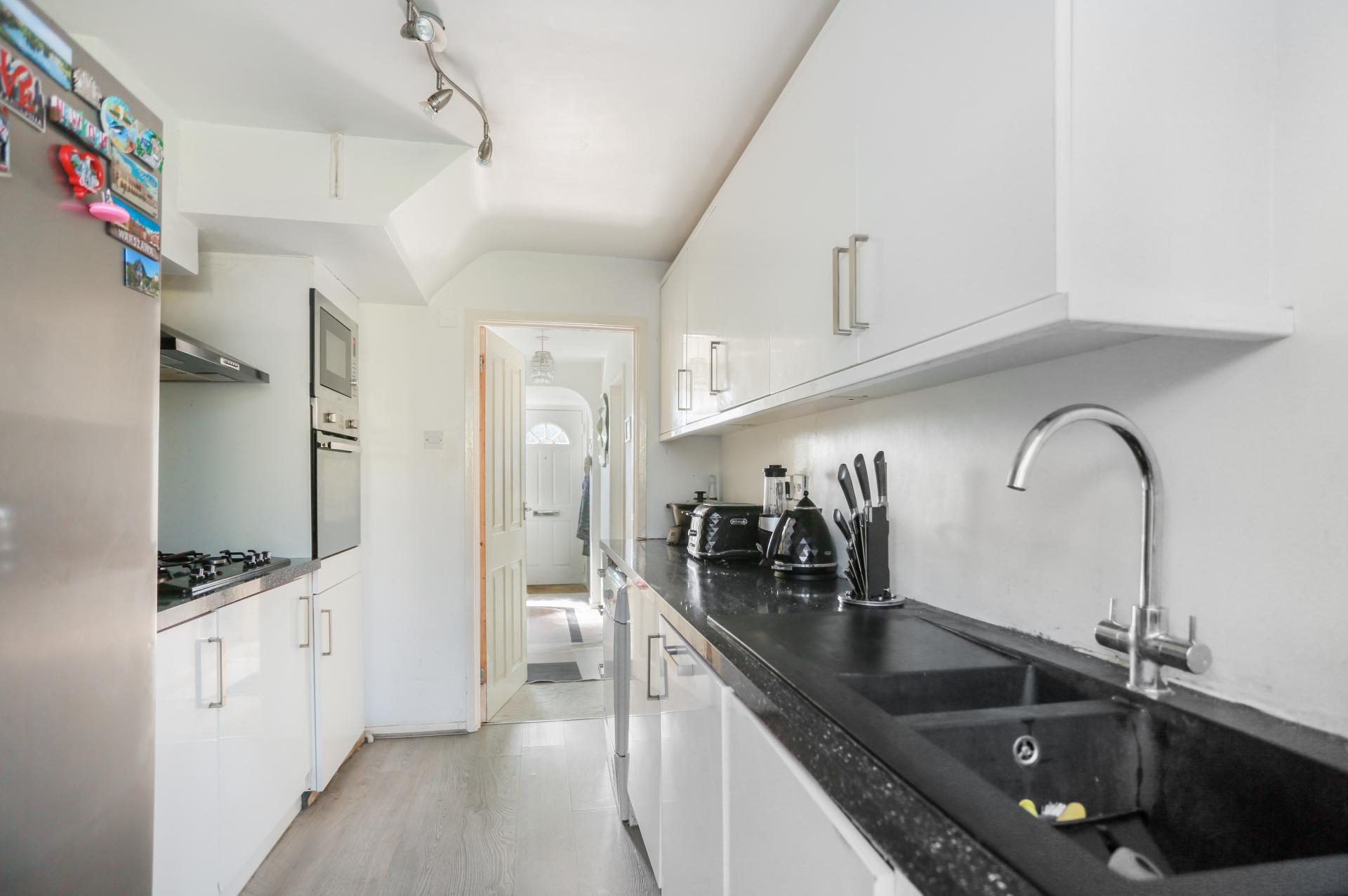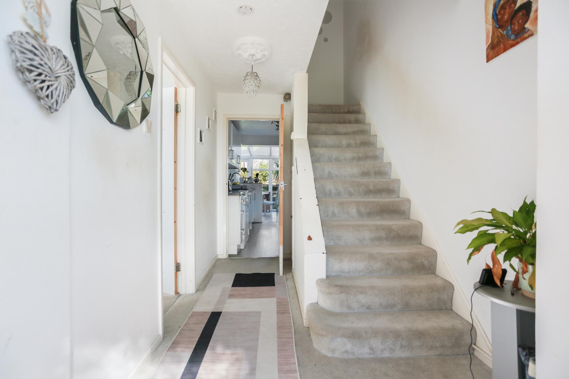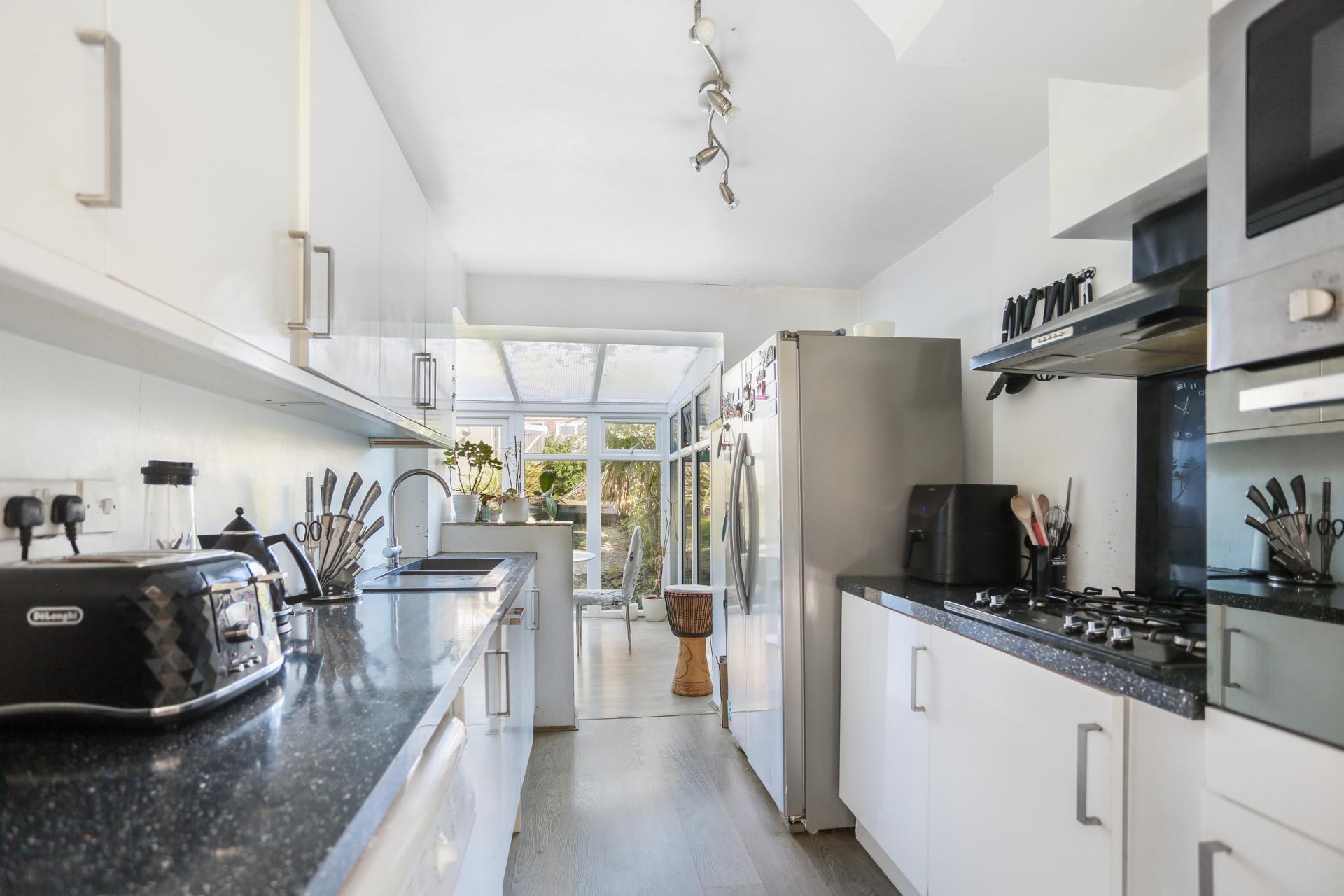 Classically arranged across two floors, this light-filled home features a good-sized living room and a separate fitted kitchen, both of which open up to a delightful full-width conservatory. Three double bedrooms and a bathroom with a shower over bath, along with a good amount of storage, complete the first floor. The mature rear garden is an excellent size, and there is a private garage located at the back of the property. With a front garden overlooking lovely communal green spaces, this property offers plenty of opportunities to connect with the outdoors.