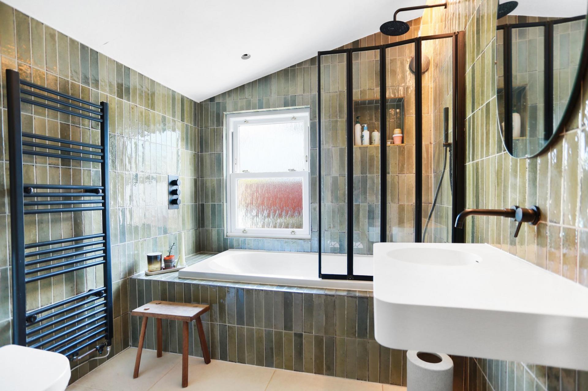 Upstairs, there are three well-proportioned bedrooms, one benefiting from decorative fireplaces. The principal bedroom occupies the entire top floor and offers an excellent amount of fitted storage, along with charming roof top views across the surrounding area. The bathroom sits off the first-floor landing and is finished in a striking contemporary style.
