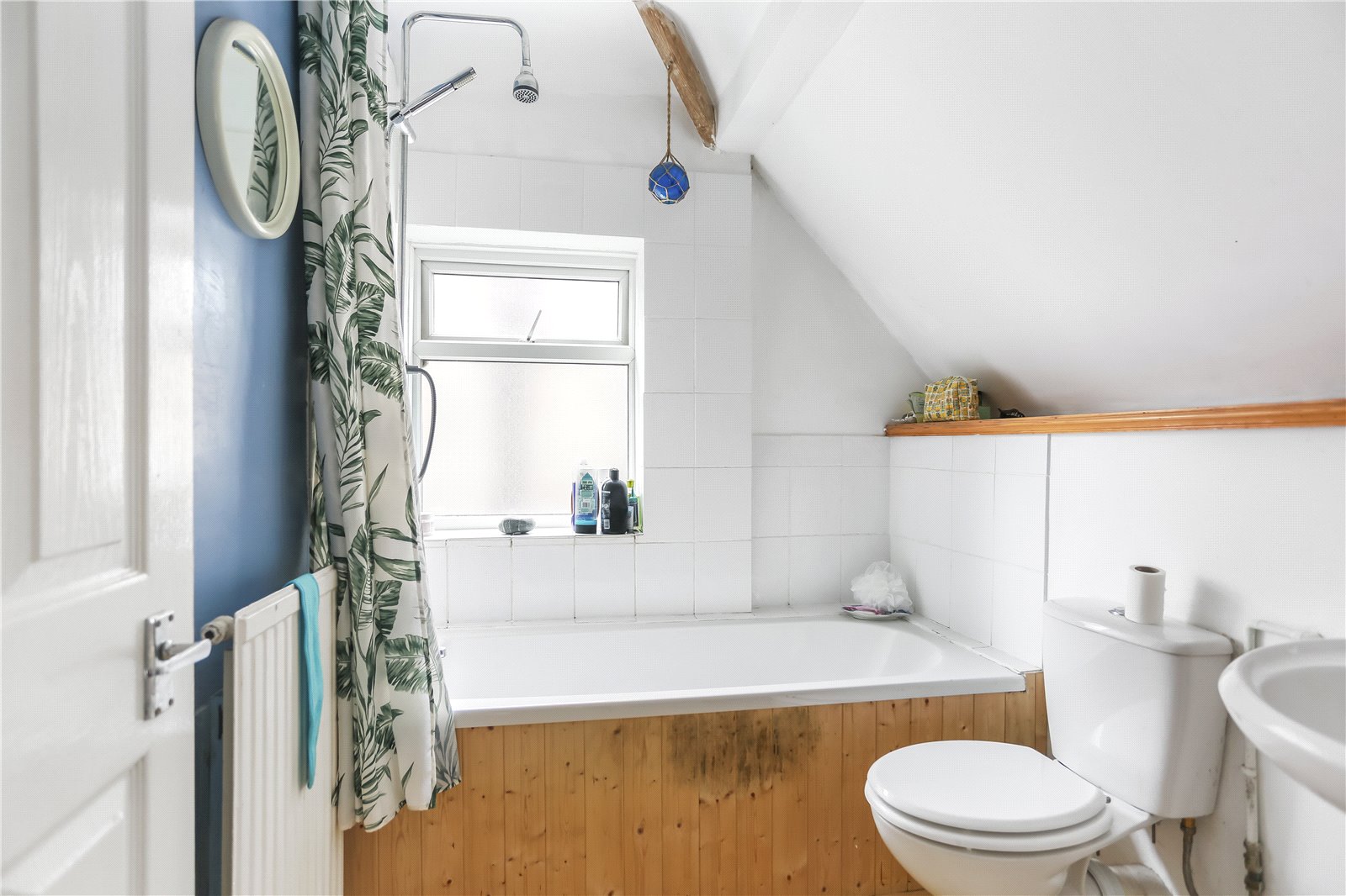 Upstairs there are two good-sized double bedrooms, one of which benefits from a built-in wardrobe, and a third smaller bedroom. There is also a bathroom fitted with a shower over bath.