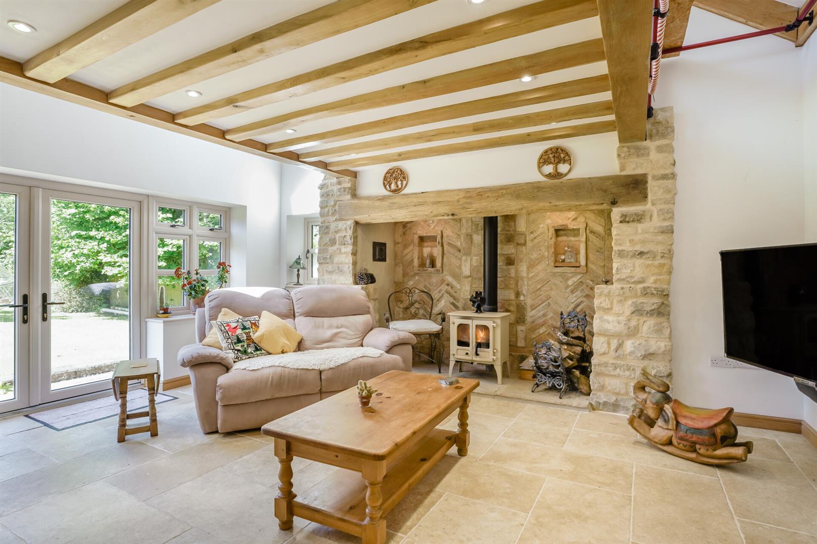 - Sitting room with inglenook fireplace and French doors to the garden