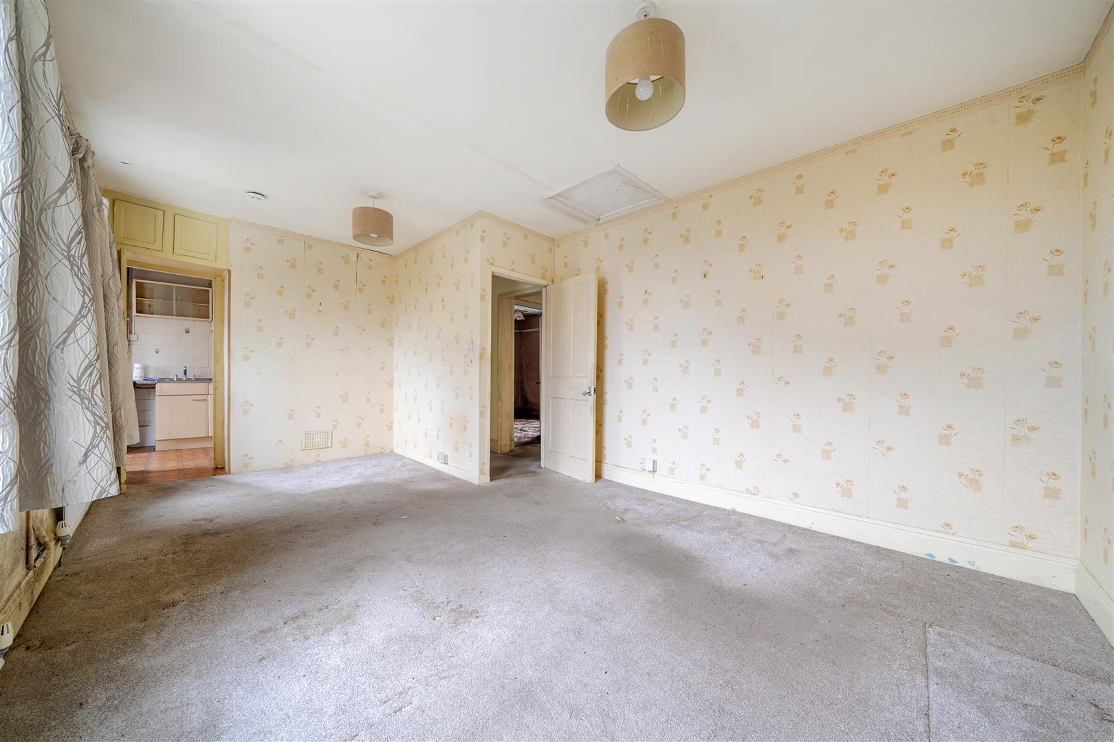 The accommodation is well proportioned throughout and comprises a good size lounge, a separate kitchen, two generous double bedrooms, and a bathroom. While the property now requires modernisation, it offers a solid layout and plenty of scope to update, extend, or reconfigure, subject to the necessary consents.