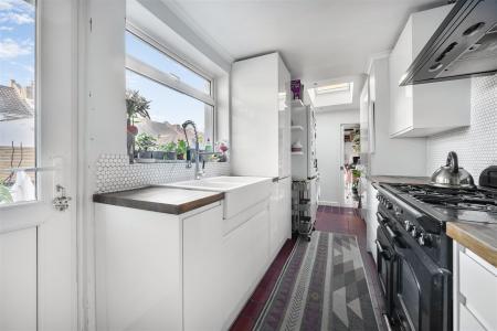 A delightful Victorian terrace home situated in this highly popular residential location, just a stone's throw from Victoria Park. This charming property is presented to a high standard and offers well-proportioned accommodation throughout. The ground floor comprises a welcoming entrance hall, an elegant dining room featuring a bay window, period-style fireplace, and stripped floorboards, which continue through to the generous sitting room, also benefiting from a period-style fireplace. To the rear is a contemporary fitted kitchen, complemented by a useful utility area with Velux skylight and space for a washing machine and tumble dryer. Beyond the utility area, and accessed through sliding doors, is a versatile home office with French doors opening directly onto the rear garden. The first floor offers two double bedrooms and a modern bathroom fitted with a separate corner shower cubicle. Externally, the property benefits from a small, low-level wall-enclosed front garden, while the enclosed, paved rear garden provides gated pedestrian access-ideal for low-maintenance outdoor living.
