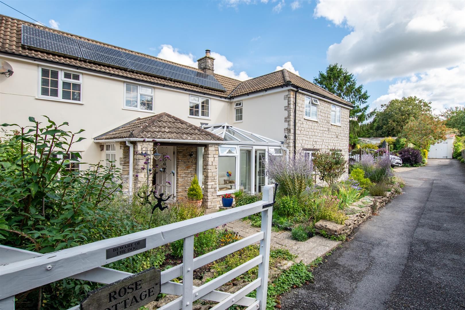 Rear Of Property - This area is laid to tarmac, offering ample parking, while a charming seating area provides the perfect spot to relax or enjoy a glass of wine.
