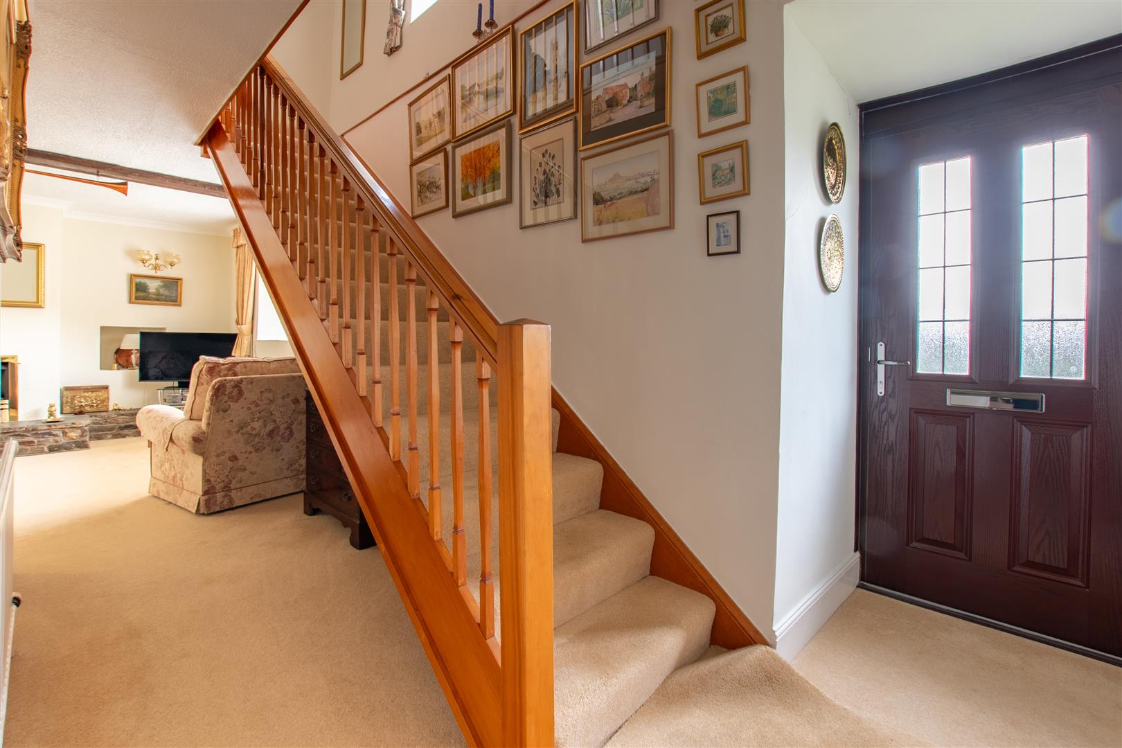 Entrance Hall - Entry is gained via a wood effect uPVC double glazed door, complemented by a matching double glazed side window that allows natural light to filter into the space. A staircase rises gracefully to the first floor, while a coved ceiling enhances the sense of finish. Additional features include a telephone point, radiator and a useful storage cupboard.
