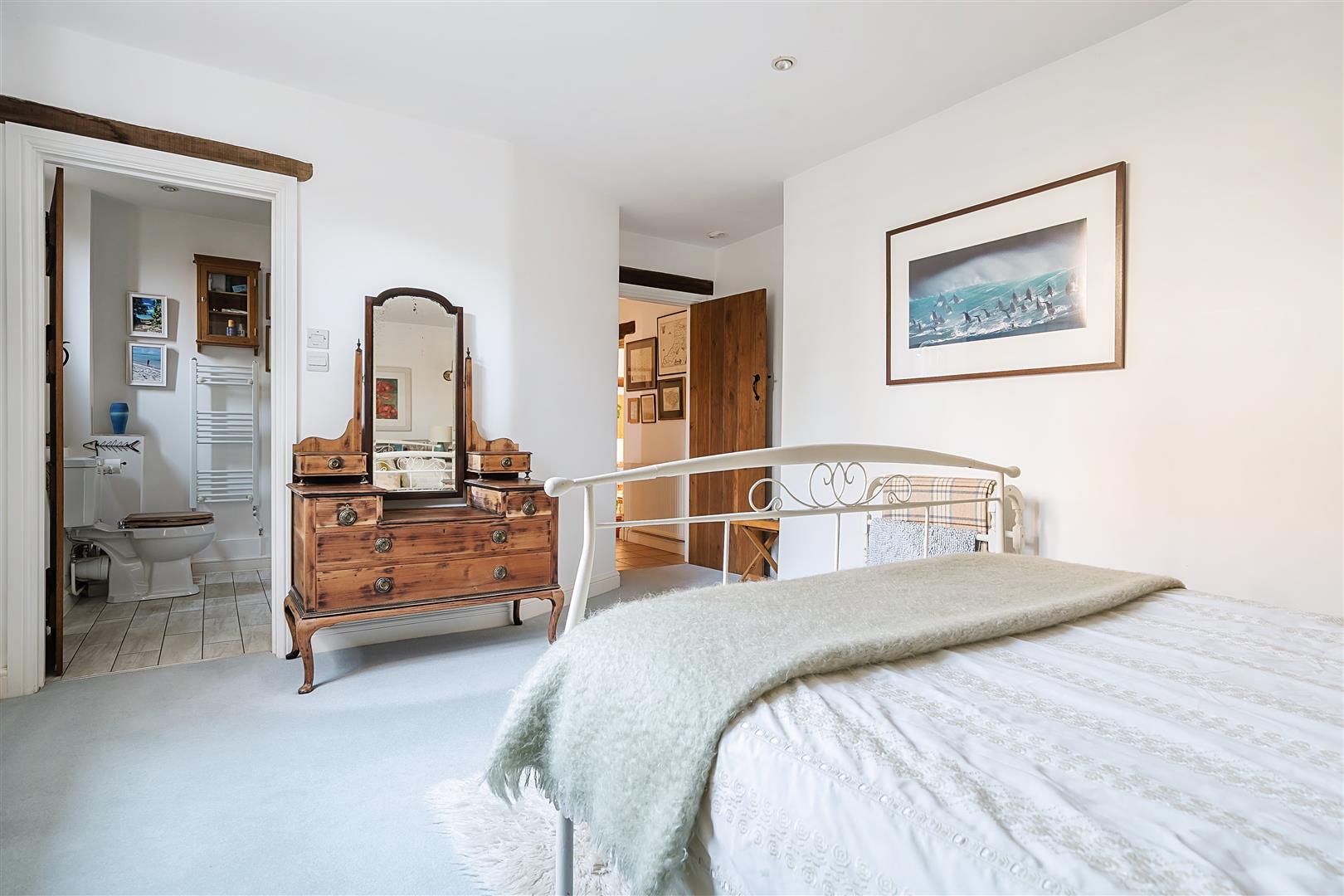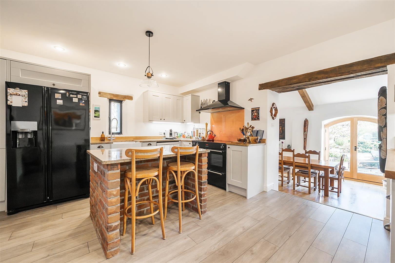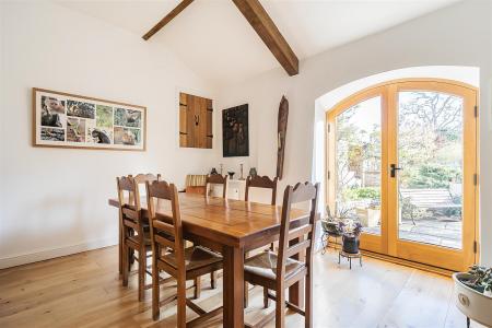 - Features including Oak internal doors with Suffolk latches, exposed beams and an inglenook fireplace, successfully fused with contemporary fittings
