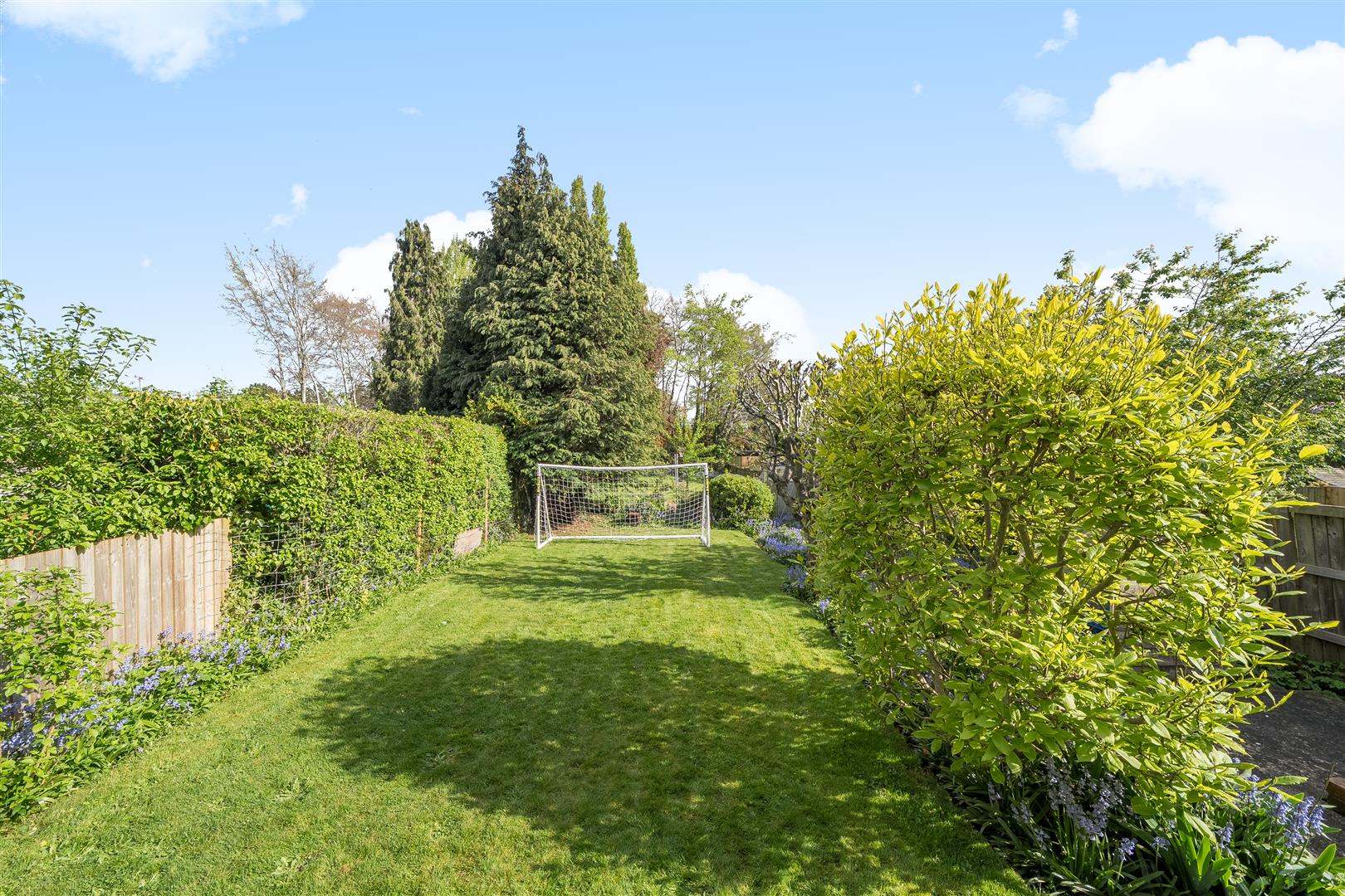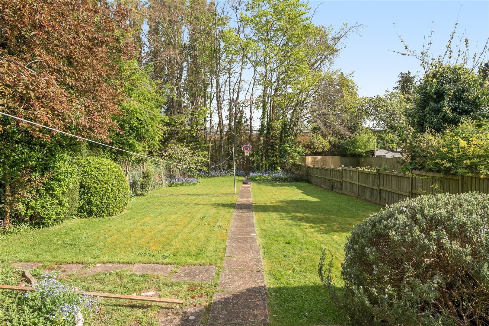 Rear Garden - 53m (173'10") - Generous rear garden measuring approximately 175ft (53m) that's mainly laid to lawn with fenced boundaries, raised patio ideal for entertaining, several small trees, well stocked flower beds, gated path leading to front of property
