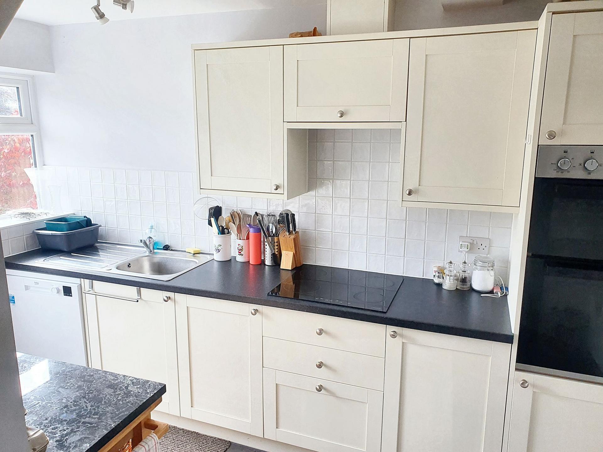 Ground floor flat with South facing Garden and Garage, located in a convenient spot not far from the High Street. The property originates from a 1950s house but was converted into two flats in 2010, of which this property occupies the ground floor. Therefore the central heating, electrical, roof, kitchen and bathroom installations are all well within their serviceable life, and the flat is nicely presented for sale. A patio area opens from the kitchen door to the South facing garden, where there is also a garage and off road parking for one car.