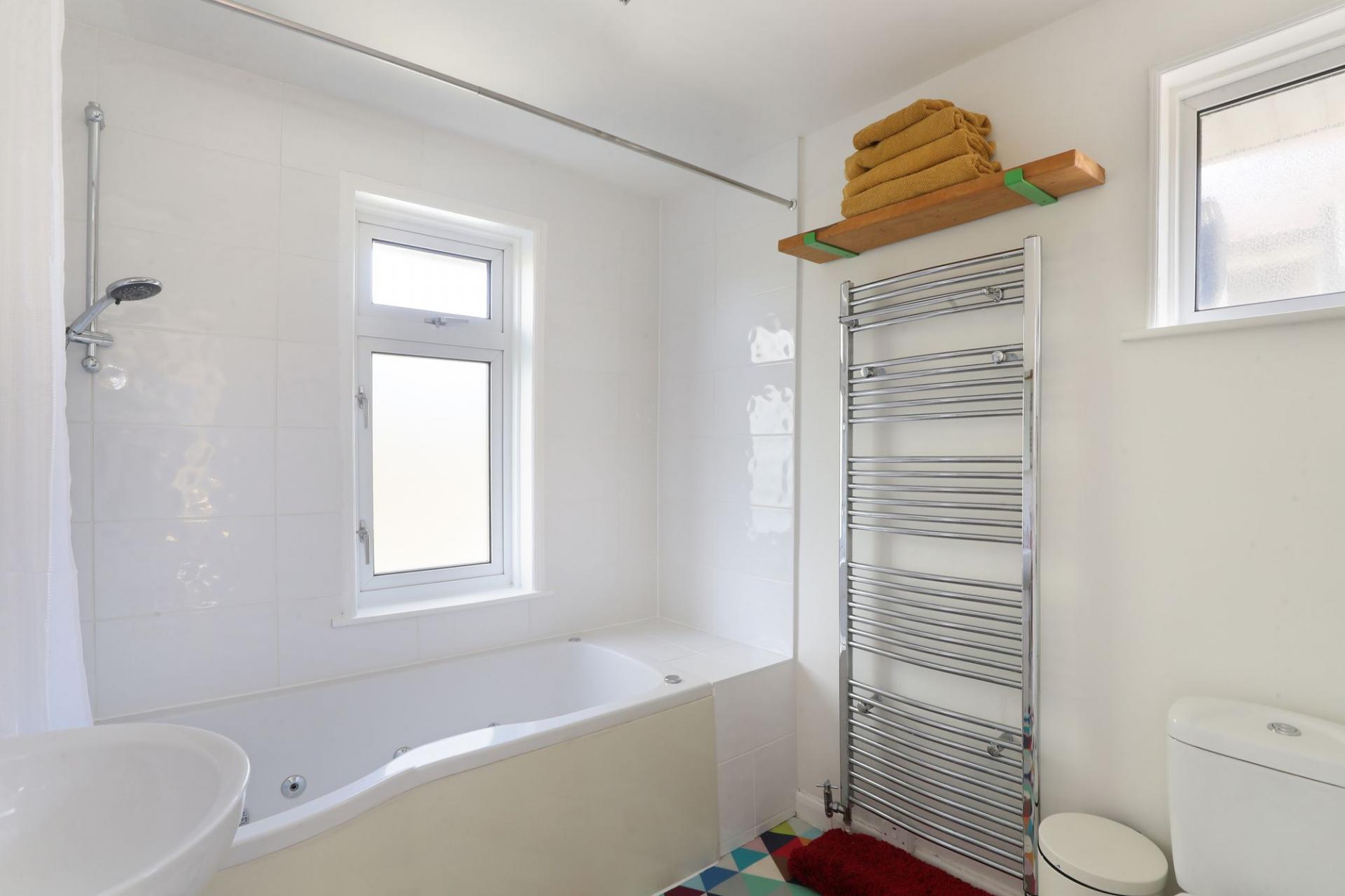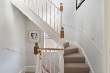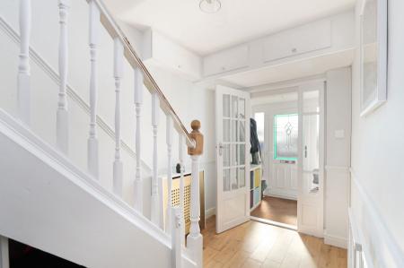 On the ground floor, there is also a convenient downstairs toilet and porch, perfect for busy family life. The light-filled hallway, enhanced by charming dado rails, leads to the first-floor landing, where you'll find three bedrooms—two generous double bedrooms and a single bedroom—along with a family bathroom complete with a relaxing jacuzzi bath.