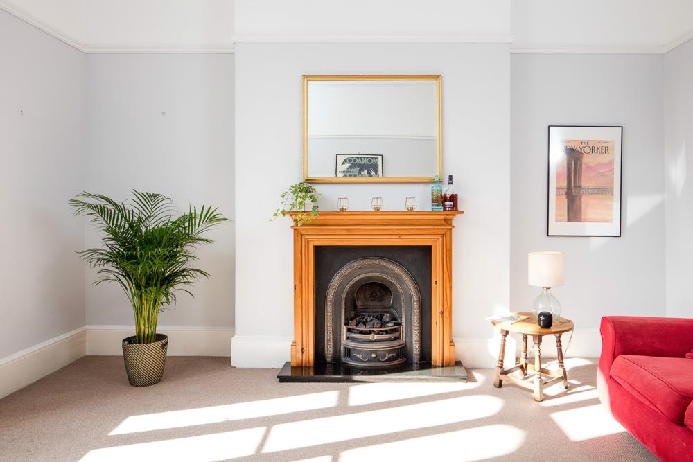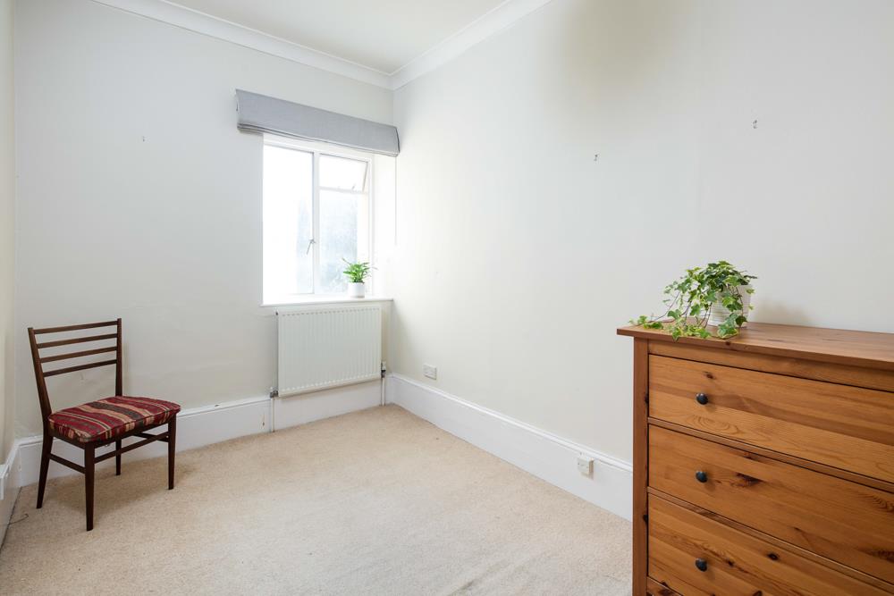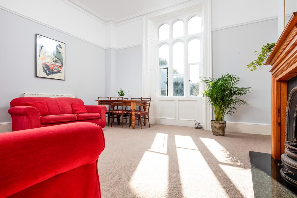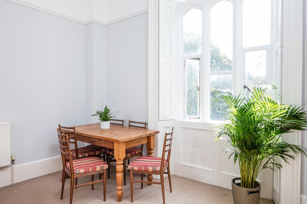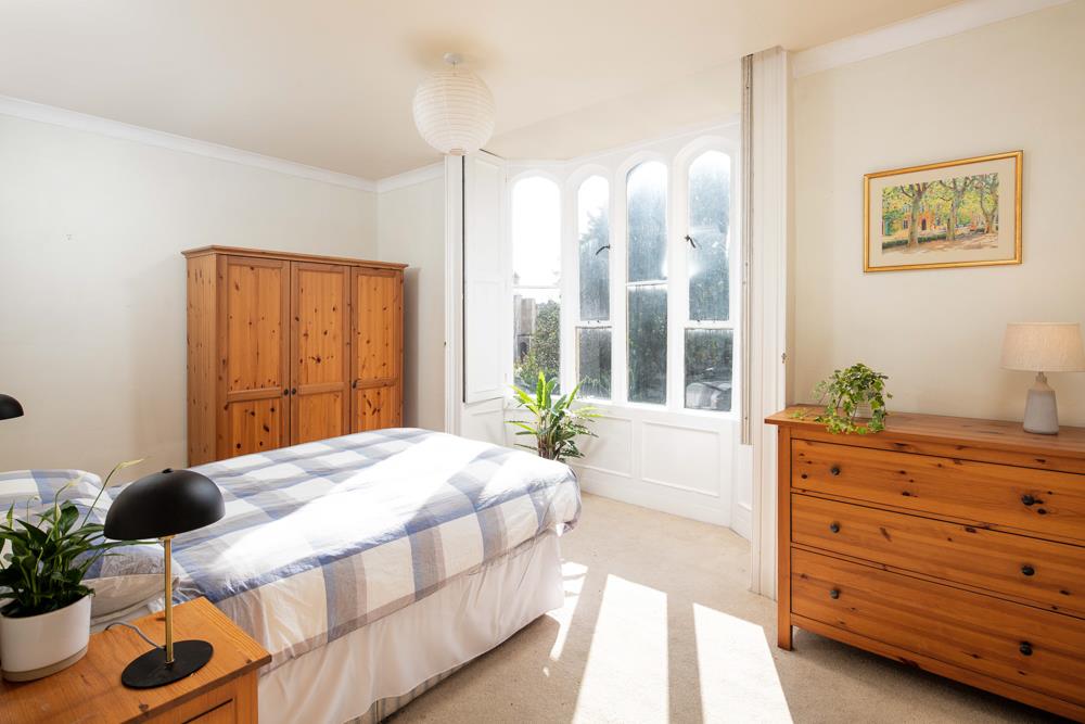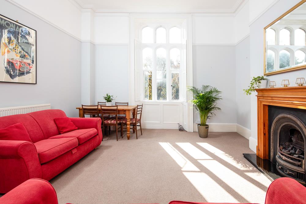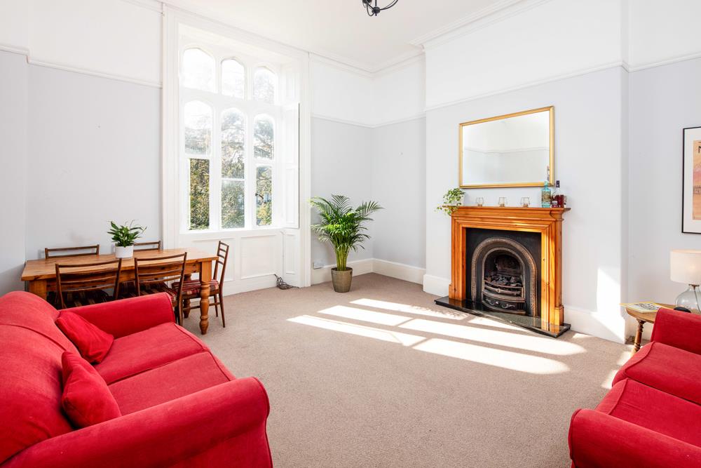 Immediately past the kitchen door is the door to the second bedroom, which has a window to the side elevation of the property and allows room for a double bed as does the spacious master bedroom located to the front of the property with a lovely bay window (with original shutters) overlooking both the communal gardens for 9 Clifton Park and the Vyvyan Terrace gardens beyond. The living room, which is also located to the front of the property also enjoys the same views and pleasant outlook and provides a generous space allowing plenty of room for both living room furniture and a good size dining table. The living room also houses a pleasant feature fireplace and original shutters to the windows.