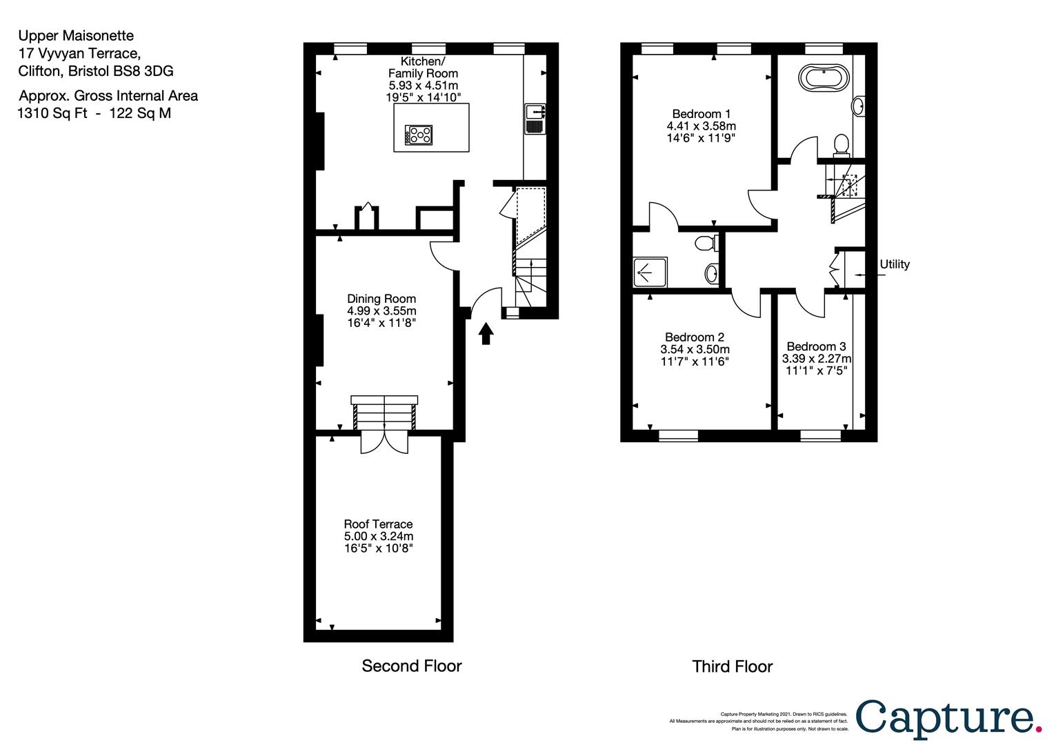 - Large south facing, private roof terrace